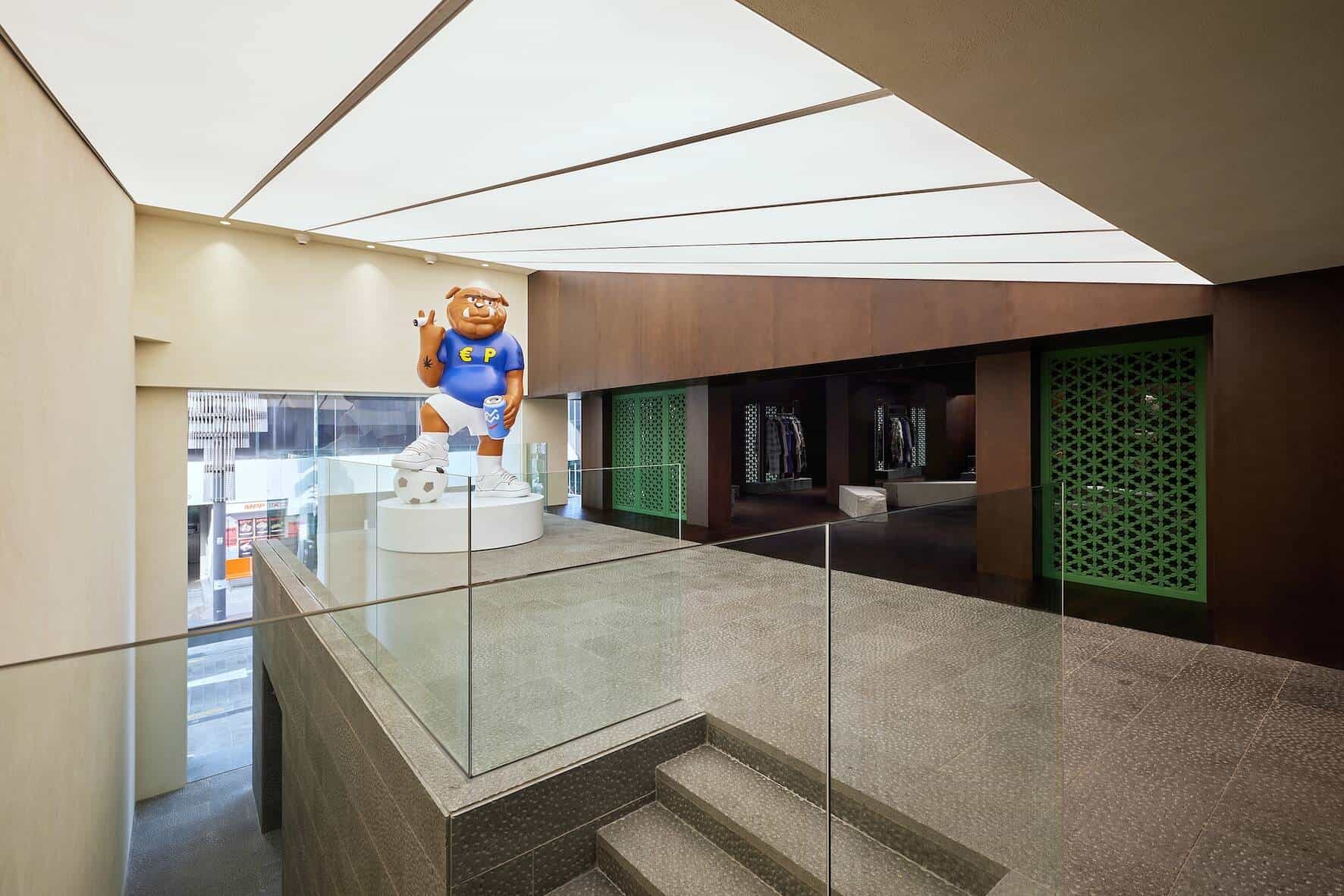 Palace has brought in the new year with a bang, opening its brand new, 468sq/m flagship store in Seoul, South Korea on February 3. The brand’s biggest retail space to date, it’s situated in Apgujeong, a popular retail hotspot for a slew of designer and streetwear labels. Through a tall external façade that encloses a multitude of design elements inspired by the architecture of Korean palaces – duh! – Palace’s street-oriented yet understates aesthetic is effortlessly reflected. With an emphasis on the immersive experience offered by an audio-visual theme, an unmissable screened wall sits opposite a statue of one of Palace’s archived characters, a Bulldog, standing loud and proud. There is also ‘P’ shaped TV screen embedded in the floor beneath a curved wall of mirrors adorned with a line-up of the brand’s most enticing skateboard decks. Discover more here. Izzy Heywood