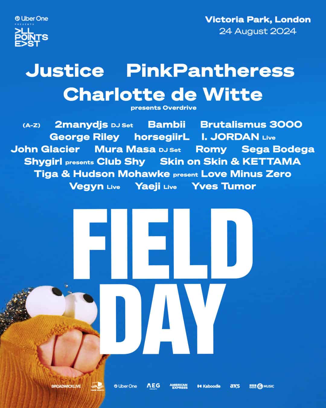 Sound the alarm, London’s favourite day fest, Field Day, has just released its killer 2024 lineup. Scheduled for August 24 in East London’s Victoria Park, headliners include crowd-pleasers like PinkPantheress, Shygirl, Horsegiirl, Mura Masa and Skin on Skin. A diverse mixture of electro, techno, pop and other infatuating genres, the schedule pays homage to the most exciting acts dominating the electronic music scene, both established and upcoming. Not one to miss, the programme has been created by Broadwick Live, the brains behind Drumsheds and Printworks, and is the perfect soundtrack for frolicking about in a field. Count us in! BK