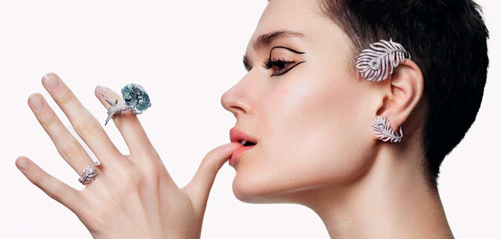 Top image: Hopi The Hummingbird Ring in 18k white gold with aquamarine and sapphire, Plume de Paon earring and ring in 18k white gold by BOUCHERON. Taken from 10 Magazine Issue 72 – DARE TO DREAM – out now! Order your copy here.