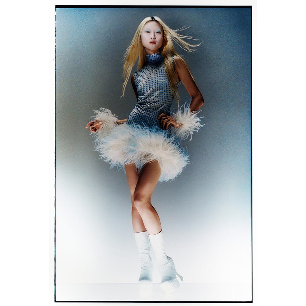 For this ultimate celebration, Capaldo reconsiders what defines ‘Bridal’, pondering the symbiotic balance between anarchy and restraint. With a sense of revelry, dramatic silhouettes, ultra-short hems, high cut necklines and evocative embellishments with flecks of baby blue are designed for the non-conformist. Meanwhile, lavish ostrich feathers, rich marabou and cascading satin dripping with bedazzled detailing transcends the archetypal wedding dress. It’s an experimental interplay between the classic and the unconventional.