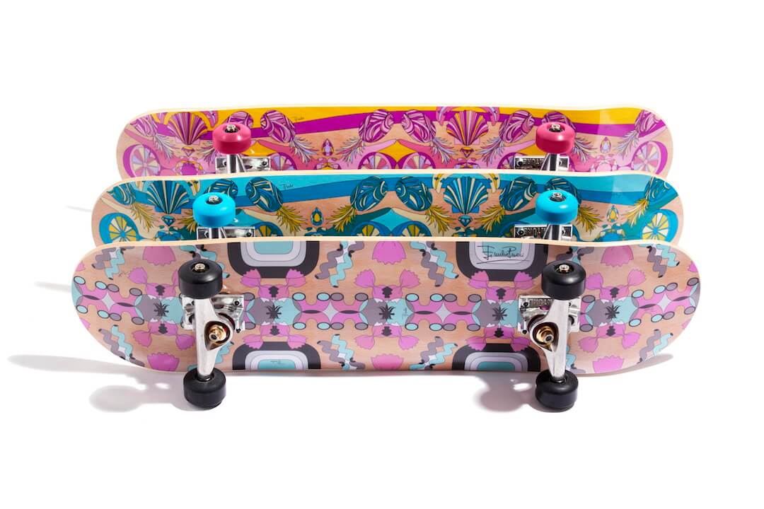 We’ve said it once and we’ll say it again. Skaters are cool. Even after Avril Lavigne almost ruined it for everybody. In fact, I spent much of my youth wishing I was dexterous enough be able to wield one – unfortunately I lack both the balance and physical skill to contemplate it as a form of transport. If I did have the necessary attributes, however, I would certainly do it on an Emilio Pucci skateboard – they’ve just designed their first ever, made in collaboration with students of Art and Design at Switzerland’s University ECAL. Or I’d just hold it to look cool. I’m always open to a new accessory. The skateboards themselves are as bold and vivid as you would expect from the Italian house – in their words, inspired by youth and decorated with “irreverent patterns brimming with motifs of Italian culture.” There are two different shapes available – the modern Street shape or the old school Cruiser. So roll around London’s streets, or just hang it on your wall. A four-wheeled work of art.