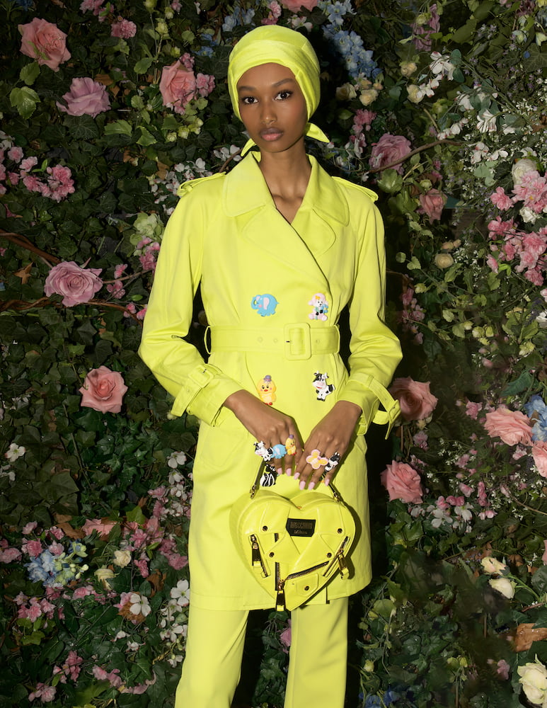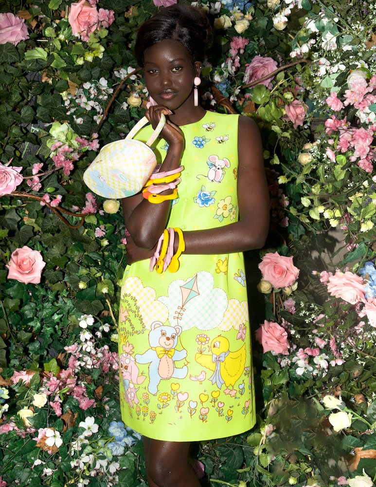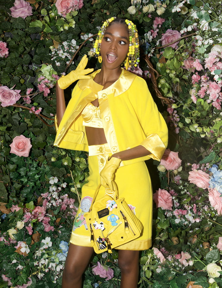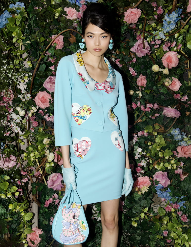 Baby-lady? Jeremy Scott invented a new fashion genre for his Moschino show his first live runway since the pandemic began. Held this season at New York Fashion Week, the master showman returned to the runway with a joyful collection inspired by childhood nostalgia. His take on pre-school chic is an insane mix of nursery graphics, Kawaii cool and sexy Fran Drescher à la The Nanny-era suiting that reworked Franco Moschino’s famous, sassy skirt-suits as well as the saccharine Chanel tweeds beloved of Karl Largerfeld in the early nineties.