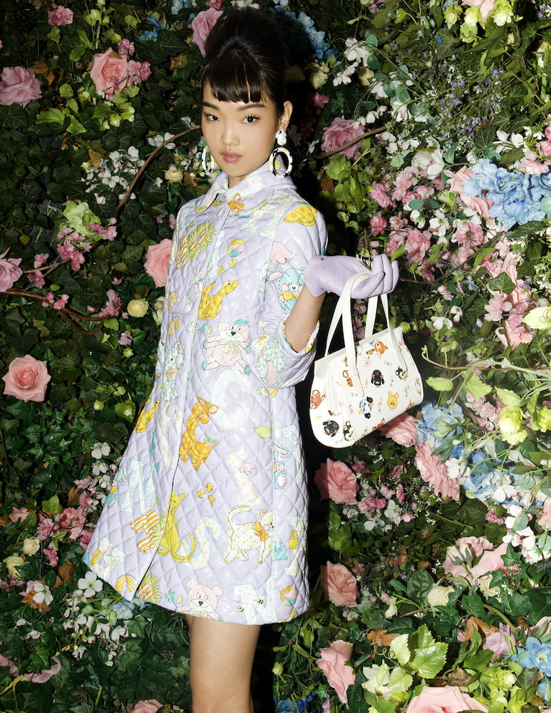 Candy pink tweed skirt suits came in itsy-bitsy proportions, and were accessorised with teething-toy earrings and plastic buttons made of love hearts or cute cartoon characters. Printed bustiers, babydolls and quilted coats featured a menagerie of adorable baby animals from bunnies to big-eyed kittens and cheeky little monkeys. Models carried love heart handbags or totes shapes like Mary’s little lamb – inspired by the designer’s favourite nursery rhyme. Sugar and spice and all things nice? “I‘ve never worried about anything being too saccharine,” said Scott.