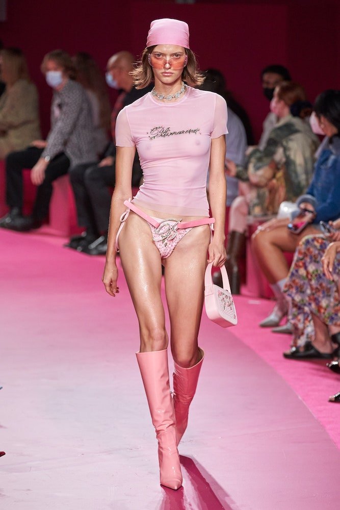 Nicola Brognano’s Y2K-infused vision for Blumarine has been a soothing balm for girls who wanted to dress up and let loose through the pandemic. And whilst they might’ve only been able to do that in the confines of their apartments, the brand’s return to a live catwalk – the first since Blumarine’s butterfly belts and faux-fur trimmed cardies became go-tos for the likes of Bella Hadid and Dua Lipa – marked a ramped-up return to the dancefloor.