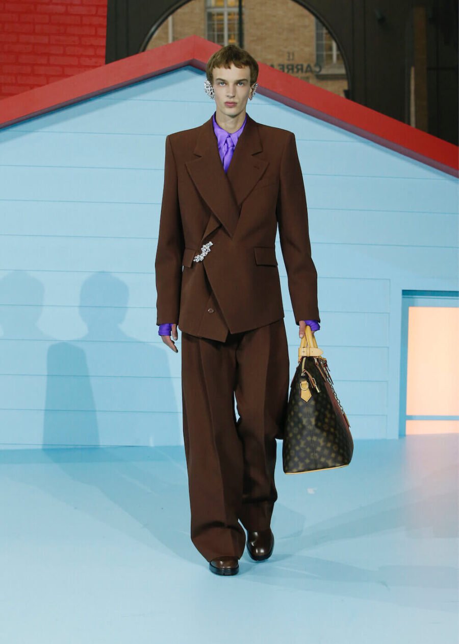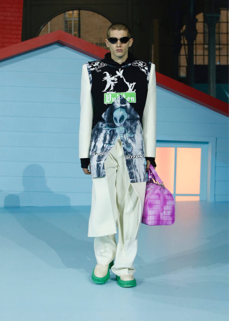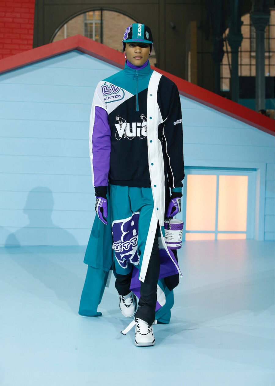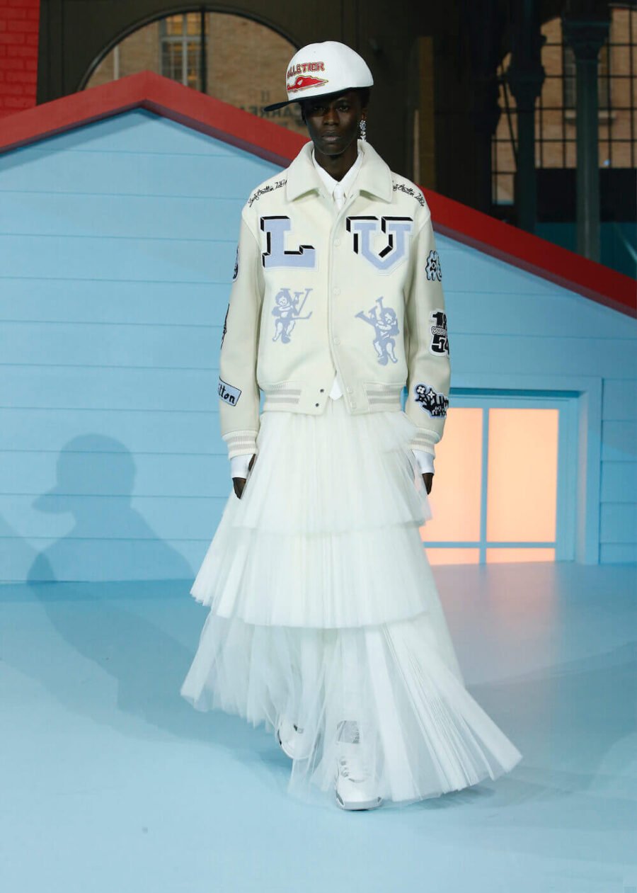 Abloh’s signature theme of boyhood was once again expressed. He saw it as a playful, graceful state, where the imagination is given the freedom to soar and the possibilities are limitless. The idea was encapsulated by the dancers who opened the show, elegantly falling off the rooftops onto hidden trampolines before bouncing back into place.