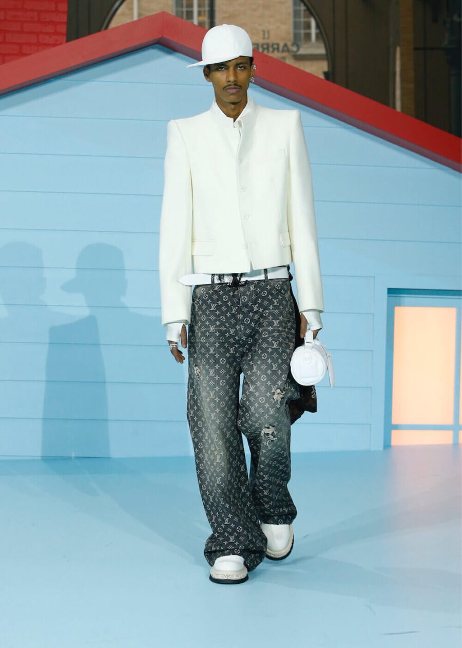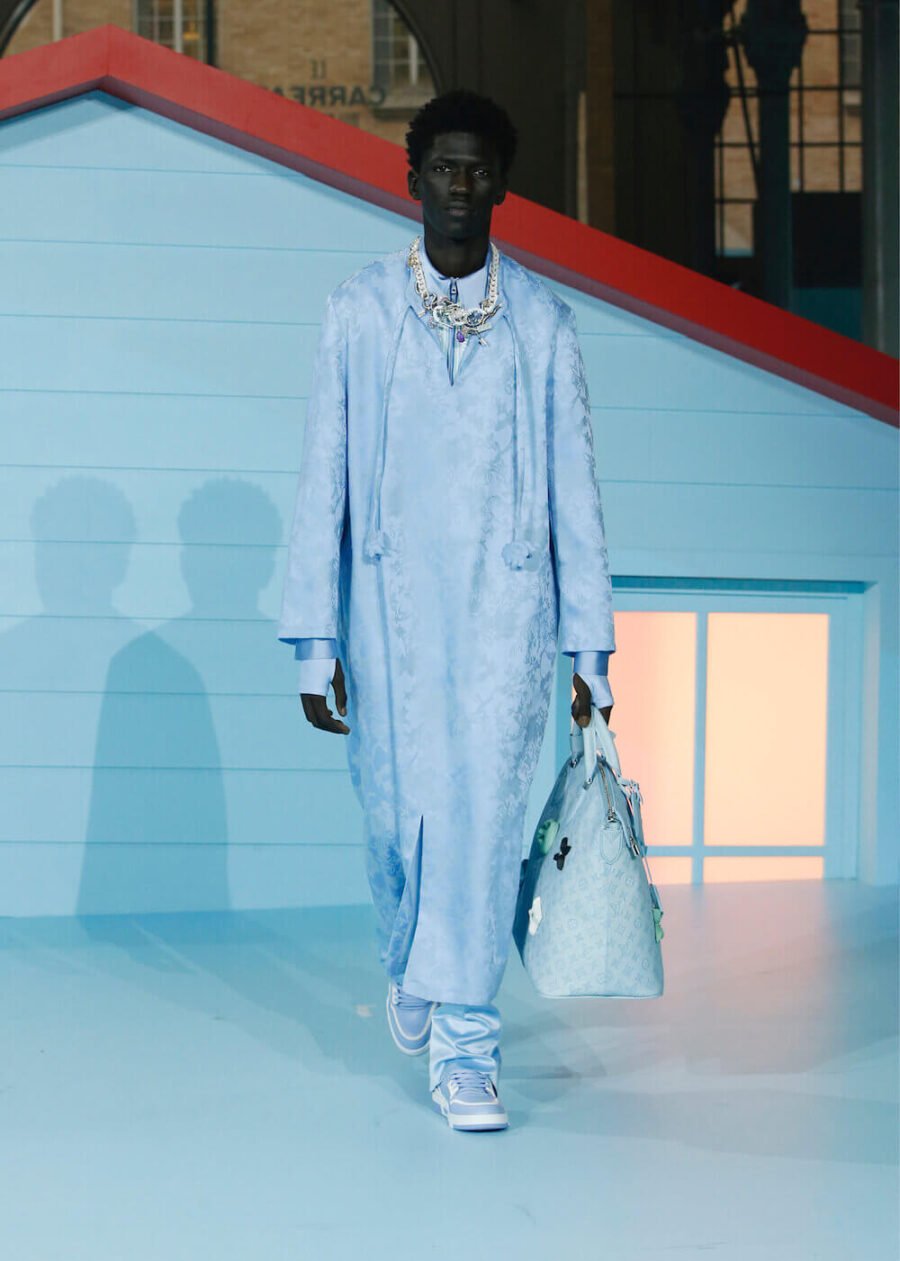 The show, entitled Louis Dreamhouse, was a celebration of everything Abloh stood for. Storytelling, great fits, a soaring soundtrack, superlative casting and virtuoso styling: it all came together for this last collection which played out on the sky-blue, surrealist set of a deconstructed house.