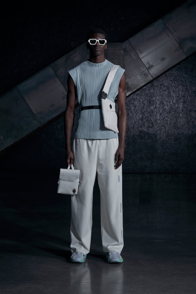 Many would argue the protective element of A-Cold-Walls’ former life would make an apt uniform for such turbulent times as now. And it seems such ideas aren’t falling on deaf ears. Ross’ SS22 collection – shown in a short film alongside the brand’s first resort offering – brings a taste for A-Cold-Wall’s beginnings to its more refined leanings today. Whether its origami-like outerwear worn with lavish, generously-sized trousers, or technical windbreakers worn under super luxurious woolen blankets.
