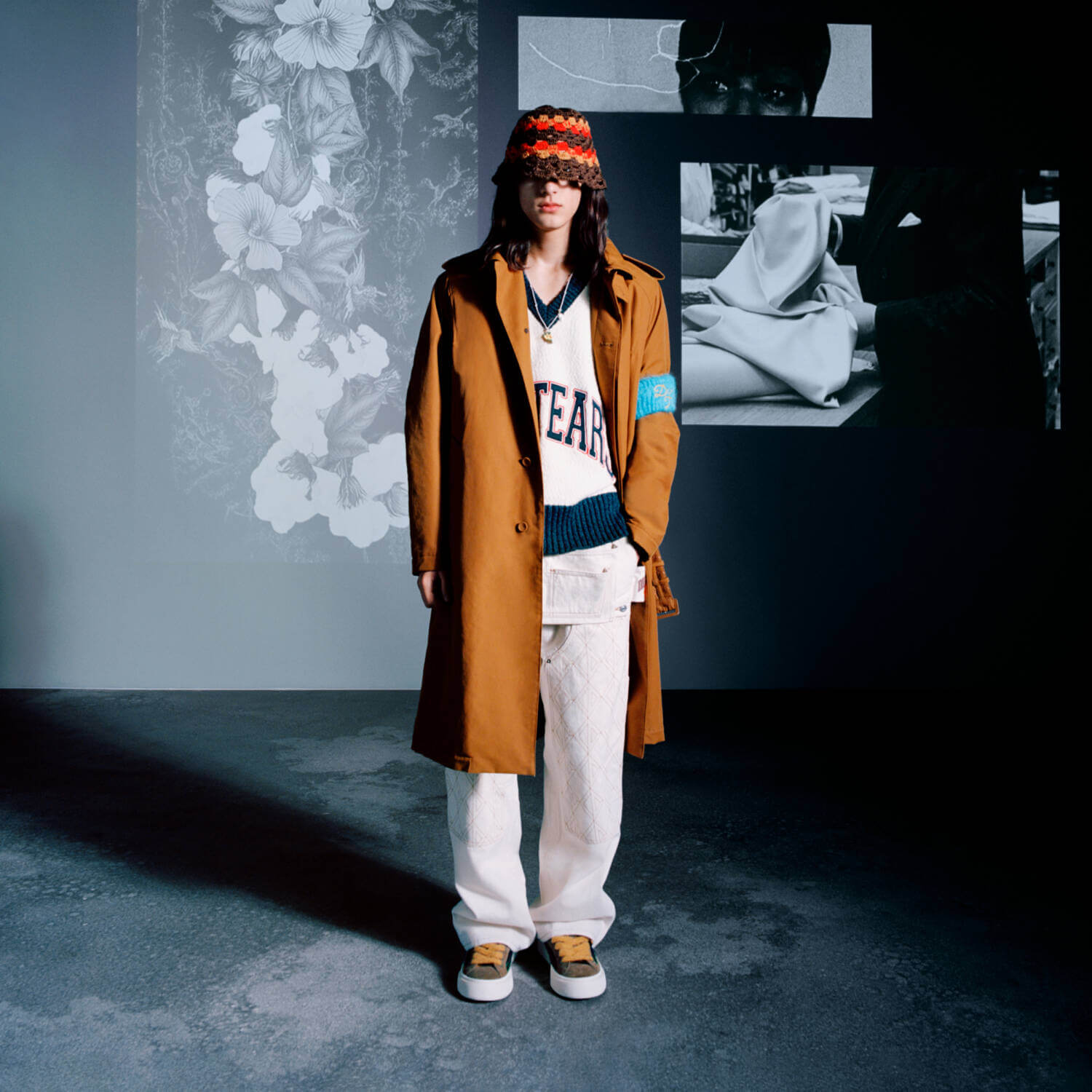 First unveiled during an event at the Grand Egyptian Museum in Cairo on December 2 – ahead of the House’s monumental PF23 menswear show which took place beneath the Great Pyramids – Dior Tears is the product of a creative dialogue between Dior Men’s artistic director, Kim Jones, and Tremaine Emory, Denim Tears founder and Supreme creative director. Citing Black Ivy League students of the fifties and sixties and Black creatives from the same period, like James Baldwin and insouciant jazz trumpeter Miles Davis, as inspiration for the team-up, it was a preppy-cum-cool range characterised by high-low combinations of French craftsmanship and American staples. Imagine tailored wool overcoats slung over slouchy cashmere joggers and suits engineered in lightweight technical fabrics borrowed from workwear.