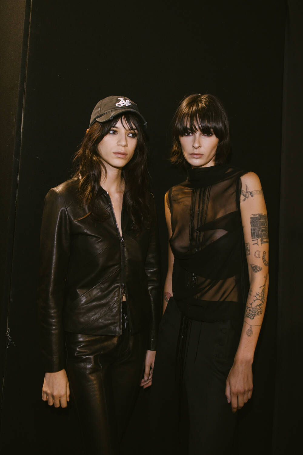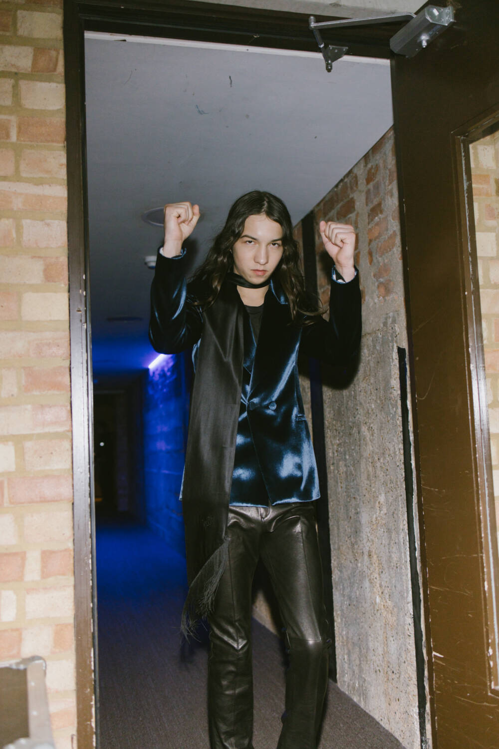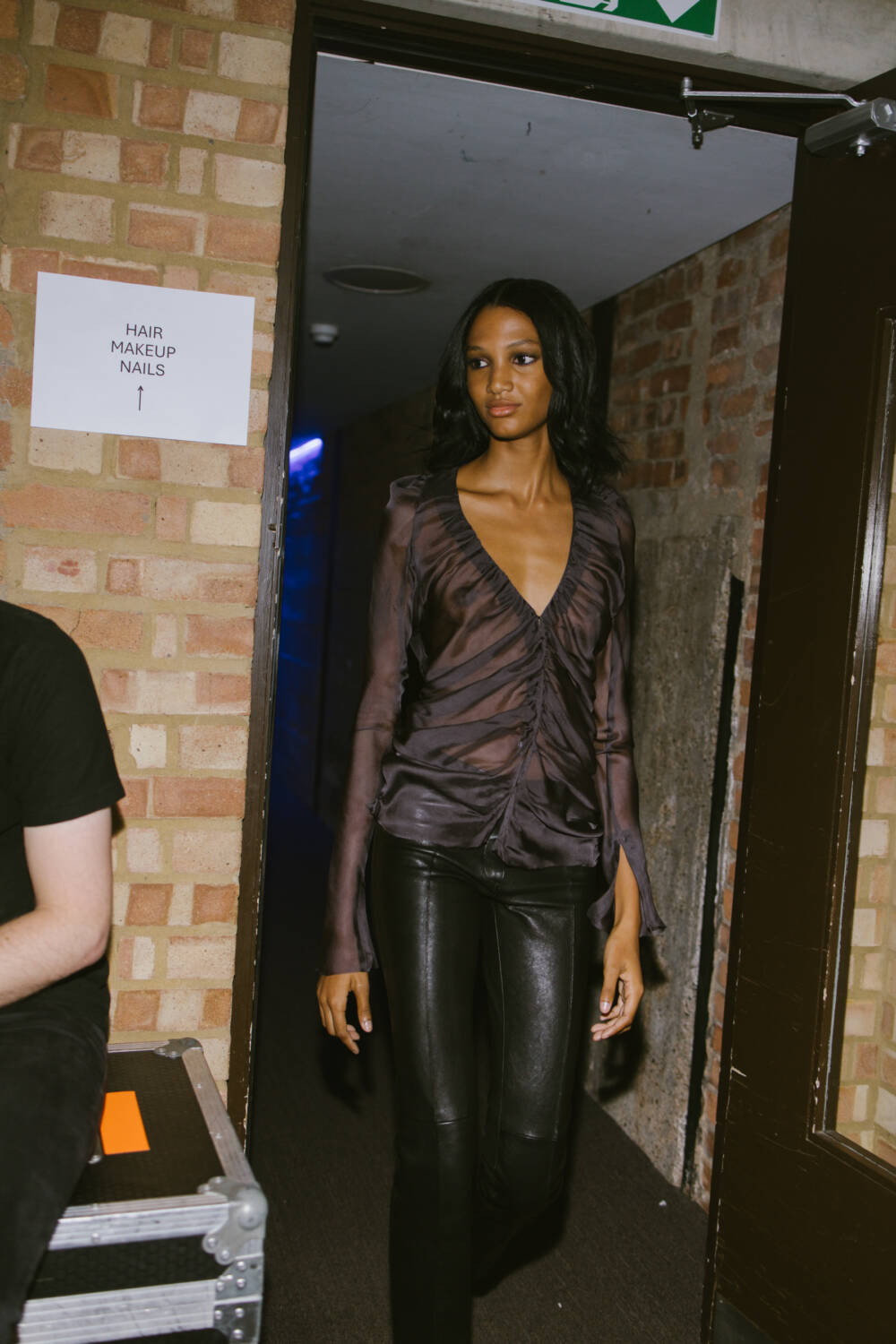 In his most elevated outing yet – Esh has recently begun working with legendary stylist Katy England – the designer spoke backstage of admiring the boys you see in Dalston “in the most elevated, sophisticated wardrobe”; those who save up six months to buy their dream Vestiaire finds that they’ll treasure for life. It was all about dressing up and dressing down in a singular notion. Think midnight-blue velvet suit jackets worn with drainpipe leather trousers and indie rocker boots. Or silk blouses with trailing hems paired with frayed baseball caps and morning-after bug eye shades. Add in sculpted blousons, skinny scarfs and casual sheer tanks and you have the ideal wardrobe for all sorts of nocturnal adventures – whether that’s glitzy bars in Mayfair or a dingy club basement in Hackney.