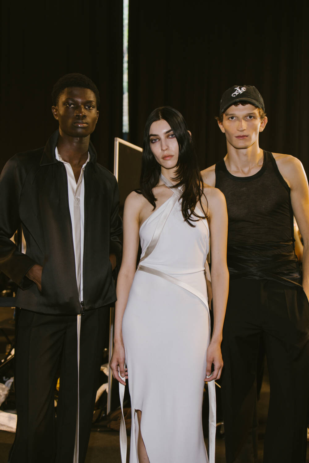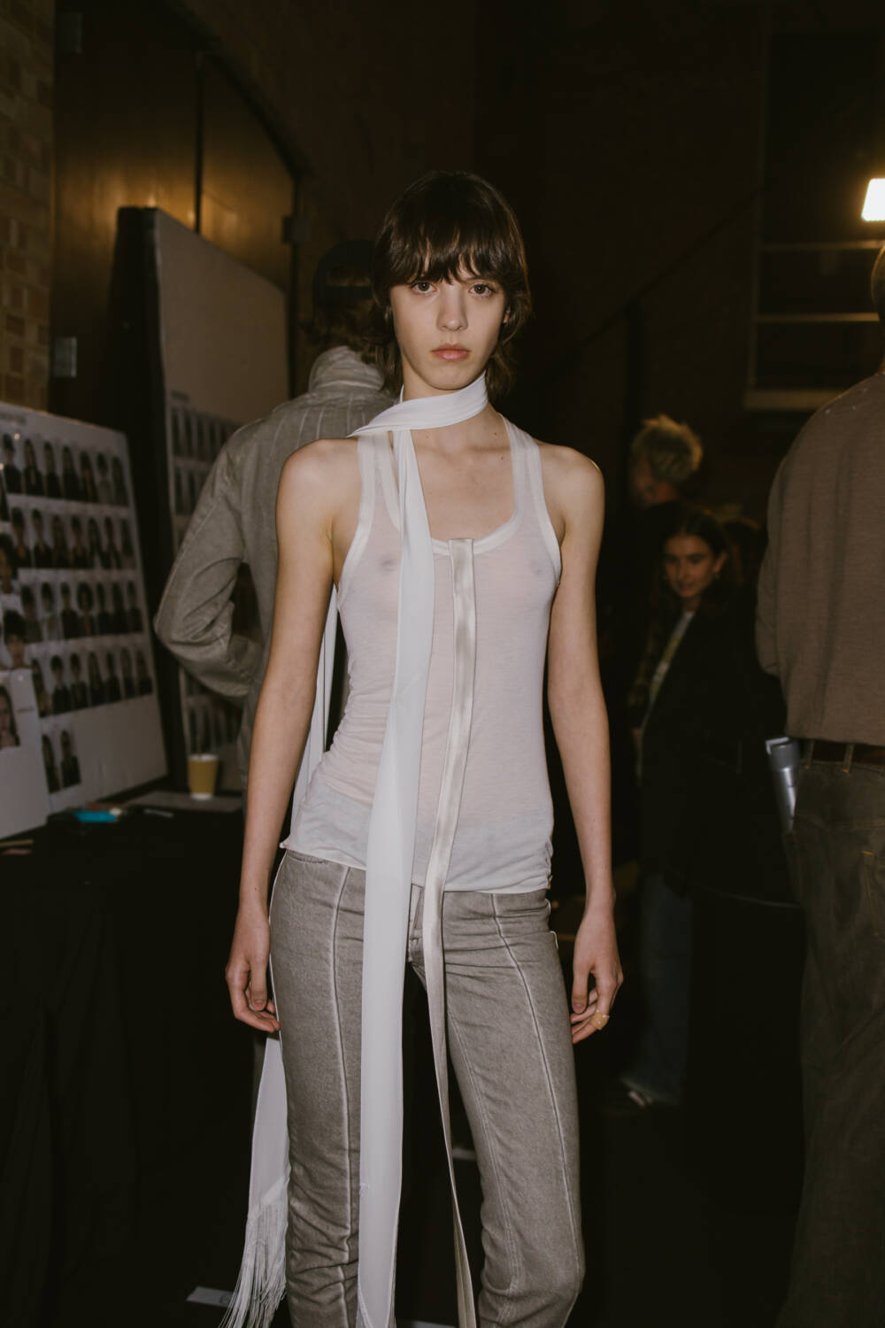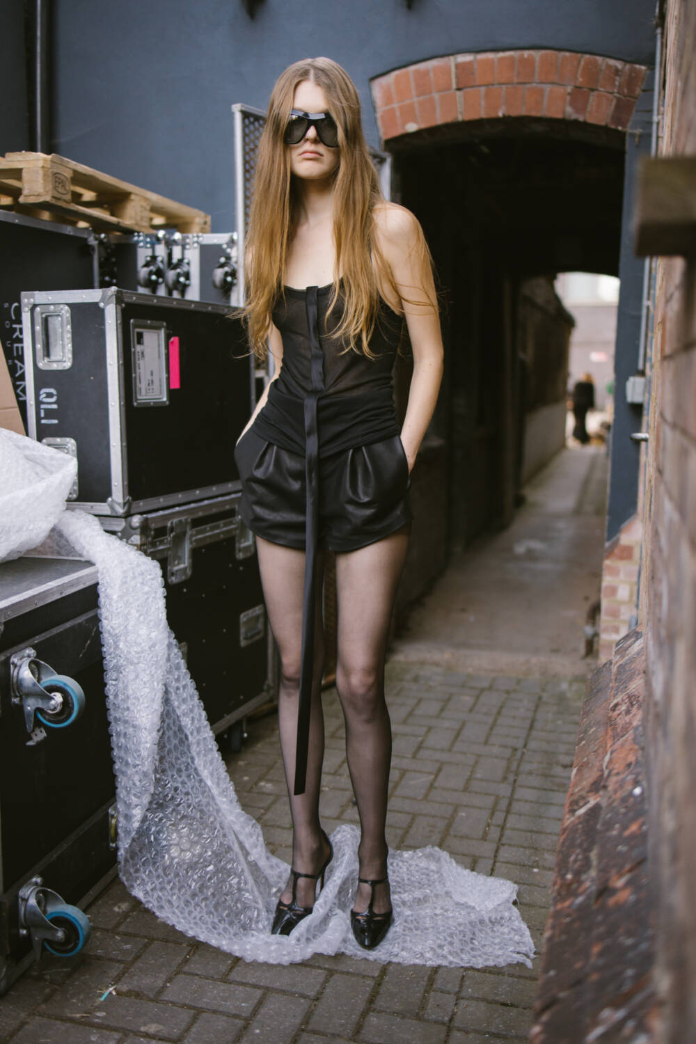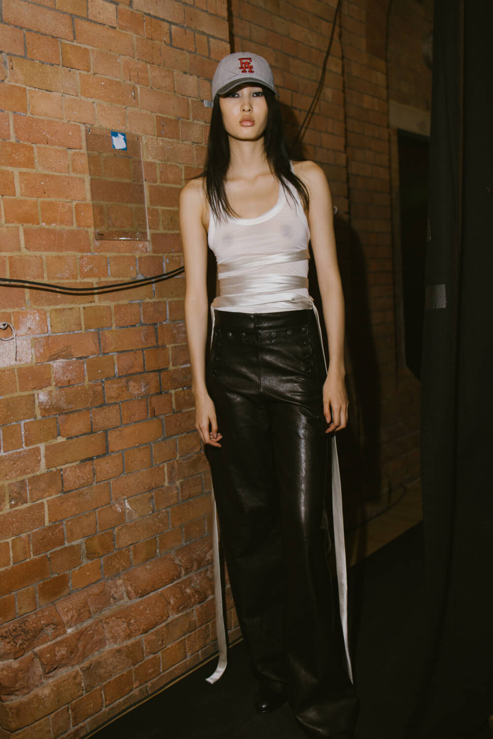 In his most elevated outing yet – Esh has recently begun working with legendary stylist Katy England – the designer spoke backstage of admiring the boys you see in Dalston “in the most elevated, sophisticated wardrobe”; those who save up six months to buy their dream Vestiaire finds that they’ll treasure for life. It was all about dressing up and dressing down in a singular notion. Think midnight-blue velvet suit jackets worn with drainpipe leather trousers and indie rocker boots. Or silk blouses with trailing hems paired with frayed baseball caps and morning-after bug eye shades. Add in sculpted blousons, skinny scarfs and casual sheer tanks and you have the ideal wardrobe for all sorts of nocturnal adventures – whether that’s glitzy bars in Mayfair or a dingy club basement in Hackney.
