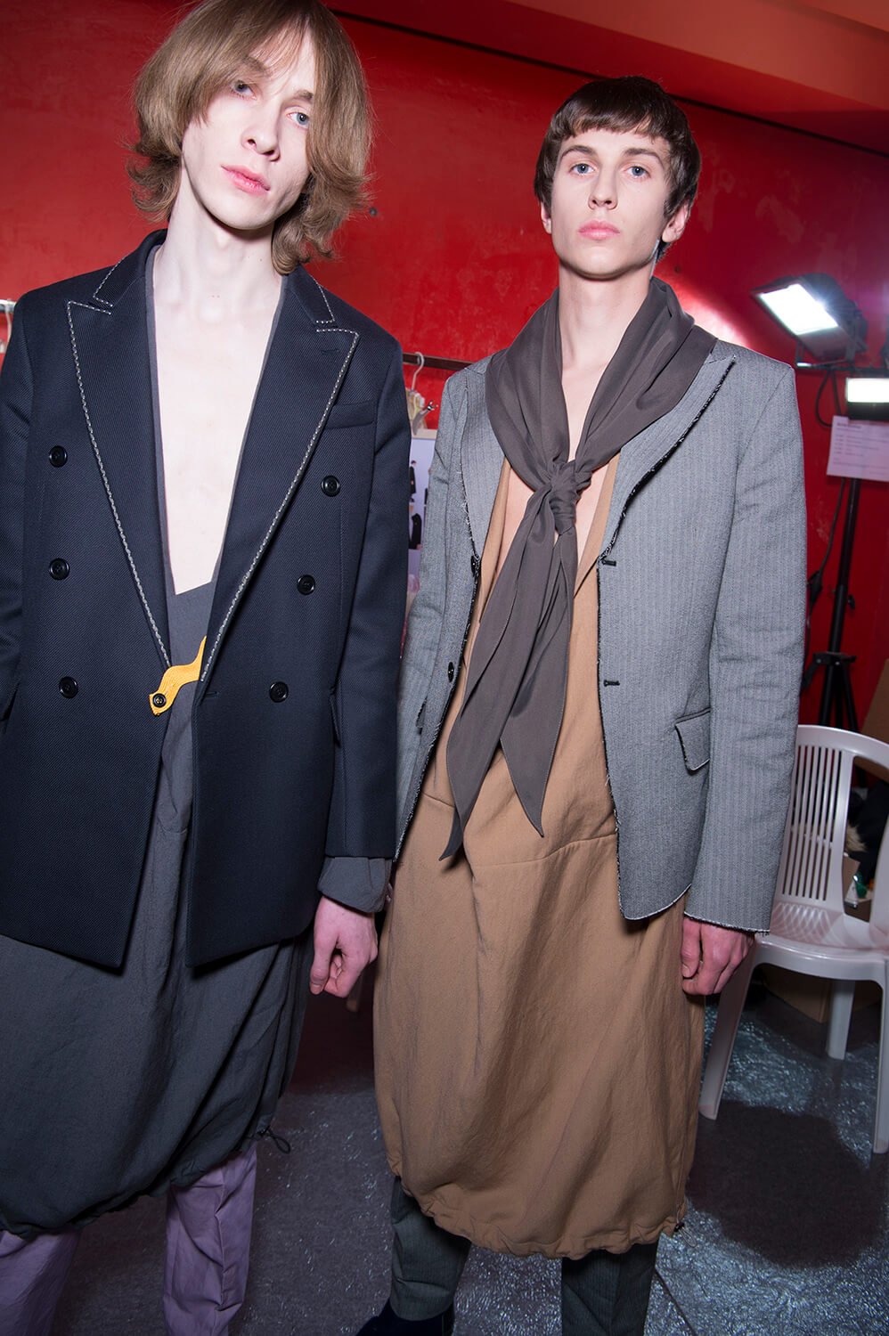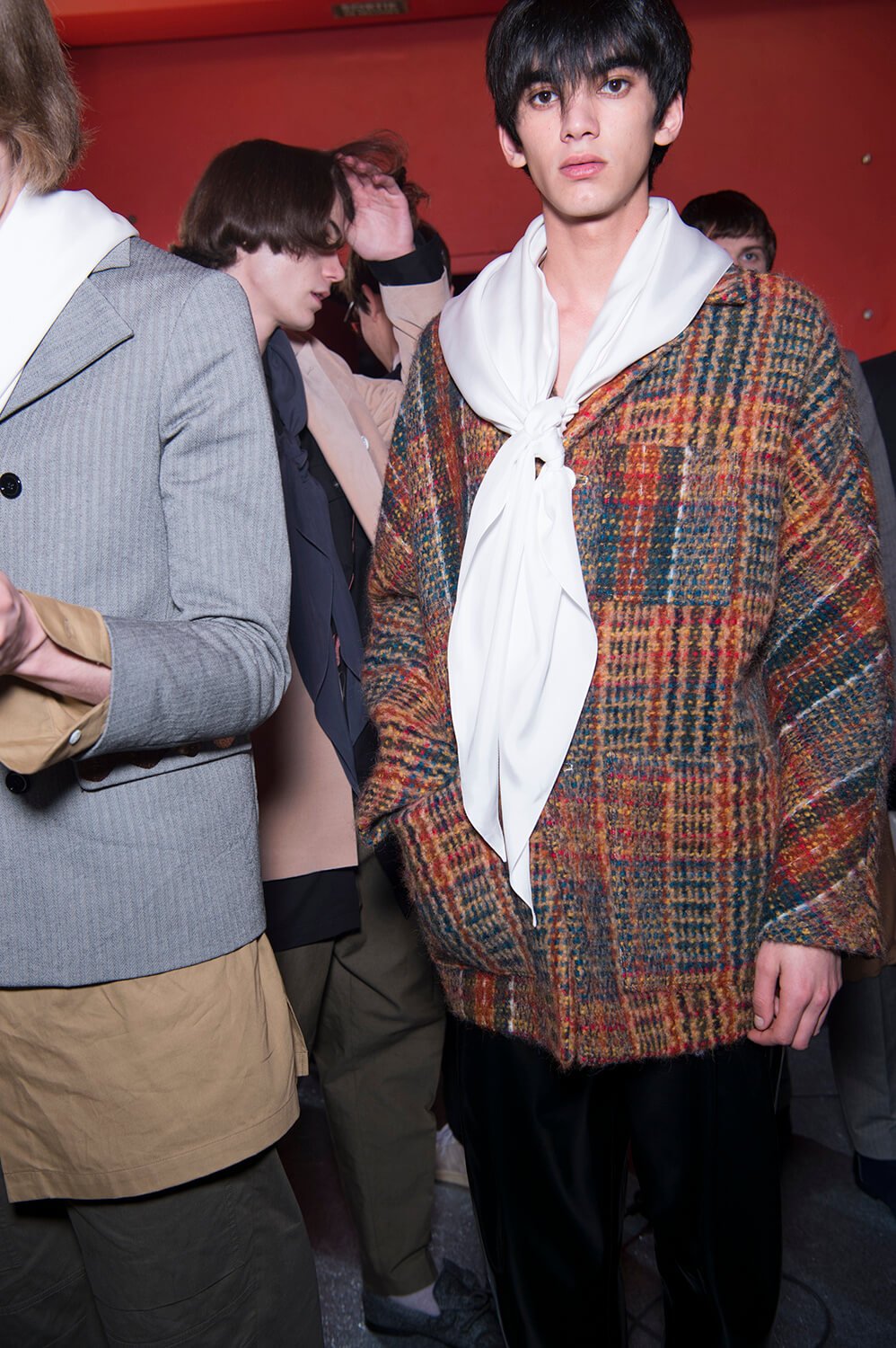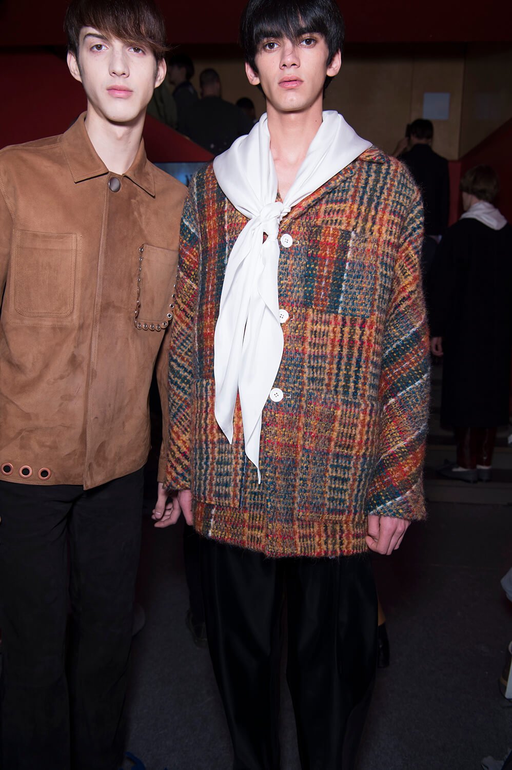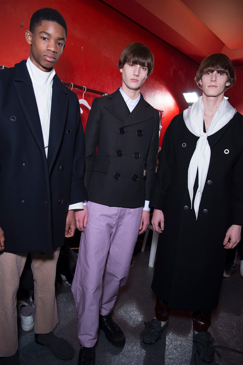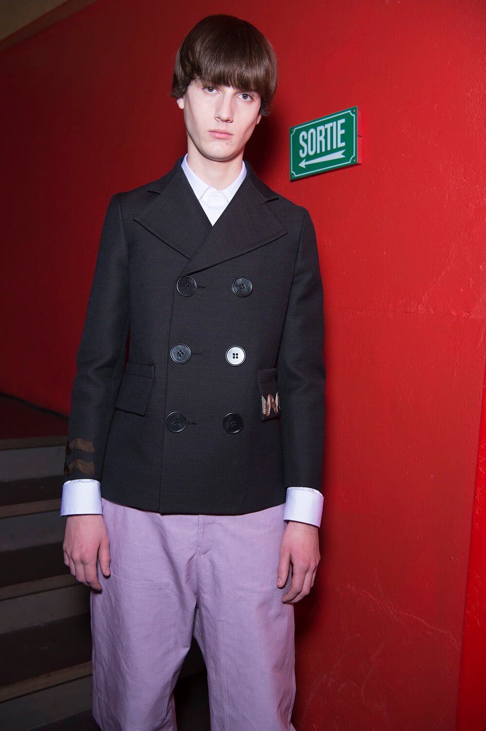 We wound up thinking of Arte Povera – the poor looking art movement – while watching the Acne Studios presentation. We’re clever like that, see, and Acne’s use of buttons as decoration, odd fabrics and giant blown-up rick-rack braid was a bit high-low in inspo. But always at Acne it can be boiled down to great coat, great jacket, great shoes. Great STUFF. Stuff you just want to wear.