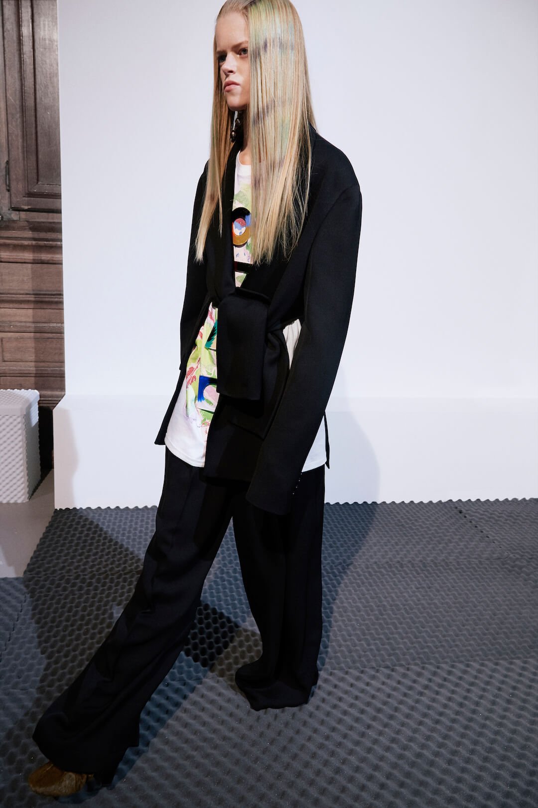 Ever wondered what the spawn of a Grateful Dead member would look like? More specifically, a daughter? Well, like this, apparently. “I love the counterculture around the Grateful Dead and the Deadheads who followed them,” said Acne’s Creative Director, Jonny Johansson of Acne Studio’s latest Resort collection. “I got thinking about what the daughter of a Deadhead would wear today, her self-possessed attitude, the freedom and fluidity of her clothing, the complexity of the prints, the futuristic edge”. So what exactly does our next-gen Deadhead like to wear? Well, she’s modern. Utilitarian. Likes a pocket. A bit slouchy, but it a kind of wistful, romantic way. Eclectic. Artsy. Rebellious, but softened – slip dresses meet roomy, masculine outerwear, asymmetric layers, flared at the bottom with exposed crinolines. As the Press Release says, “fluid, soft, layered sensuality from generous pieces of draped fabrics, with a variety of prints, from tie-dye to oil-print.” And it’s these prints that hold the collection together, the kind-of bleeding, bleached tie-dye effect the result of a return to a more hands-on approach to design – Jonny dying the fabrics by hand and then digitally scanning them, a meeting of old processes and new technologies. Which basically surmises what Jonny obsessively tries to achieve – a delve back into subcultures past and the subsequent dragging of those ideas squarely into the present. As he says, “that’s what makes things interesting for us—we’re not going back”.
