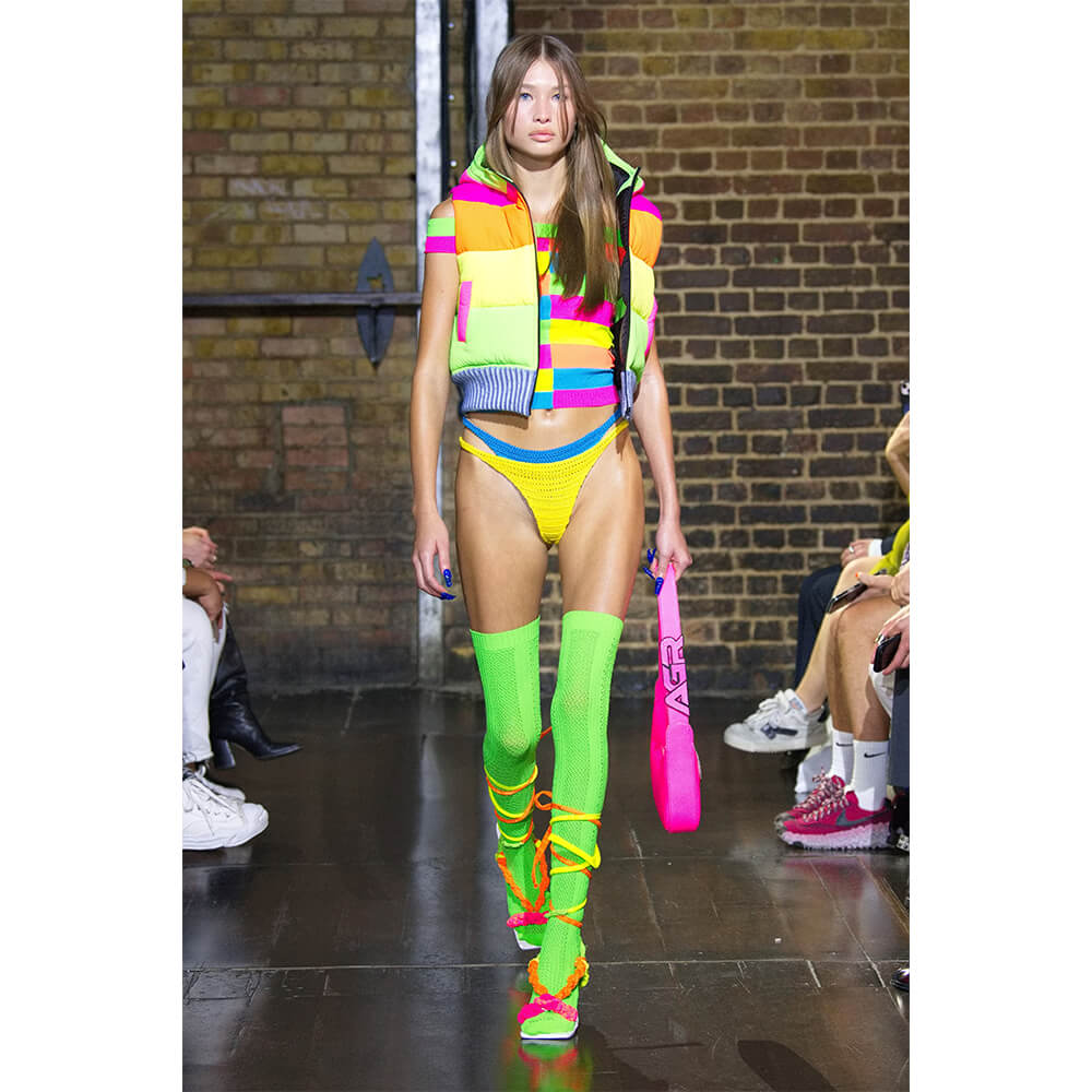 AGR is the sustainable, London-based label making sexy, technicolour-dream-knitwear – but it’s not just knits. Despite its specialty elasticated designs, creative director and founder of AGR, Alicia Robinson, explained in a preview of the collection that working with alternative materials and merchandise categories is of the utmost value to the label. “It’s really important to us to be a well-rounded brand,” she said.