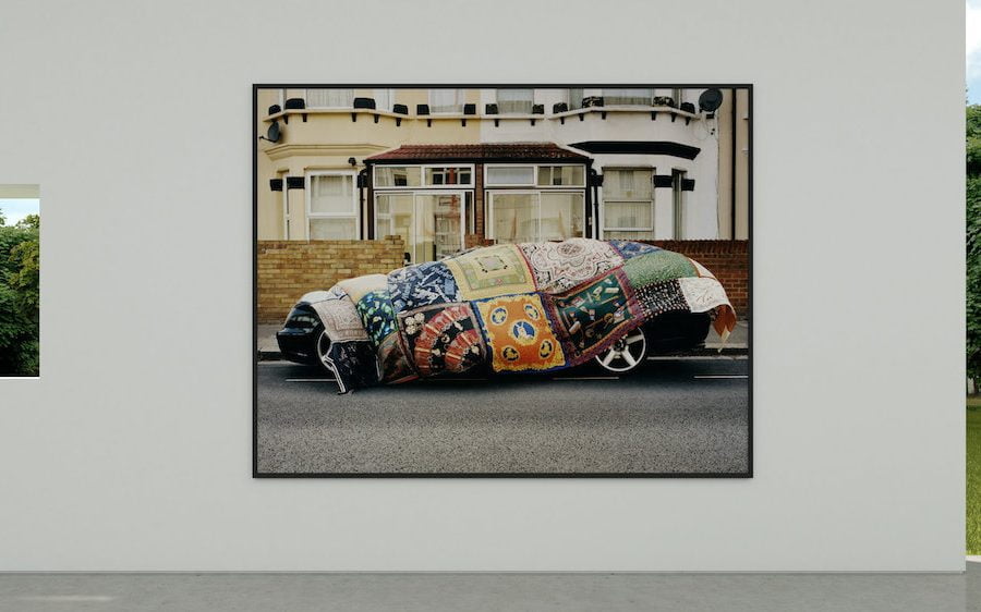 Although the designer’s clothes do appear within the project, Jalebi is in no way a campaign for the brand. Instead, Ahluwalia finds more inventive ways to convey to the vibrancy of her designs through the images. A series of photographs see parked cars draped in scarfs stitched together to create giant blankets; reminiscent of Ahluwalia’s own patchworked menswear.