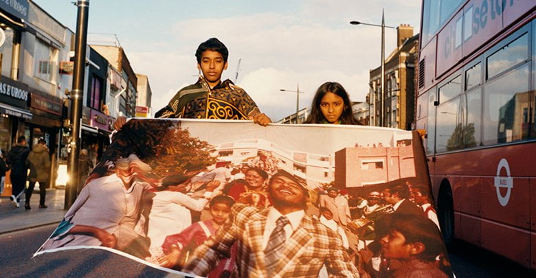 Teaming up with photographer Laurence Ellis, a regular fixture in the Ahluwalia brand since the designer graduated from the University of Westminster back in 2018, as well as stylist Riccardo Maria Chiacchio and art director Jaime Perlman, the project took 18 months and plenty trips to Southall to put together. Jalebi walks the fine line between fact and fantasy. Docu-style photographs of shopfronts sit beside construction workers wearing turbans and market-stall traders sporting England footy jerseys. Working with Troy Casting, Ahluwalia was able to get members of the local community involved in the project. School children can be seen standing on the highstreet waving gigantic flags that are stamped with the designer’s own family photographs. Family is a key fixture throughout the project. Dotted throughout Jalebi are excerpts of when the designer interviewed her own grandmother, integral to Ahluwalia as it meant the project had a Punjabi perspective interwoven throughout.