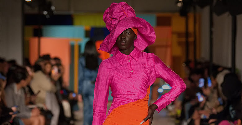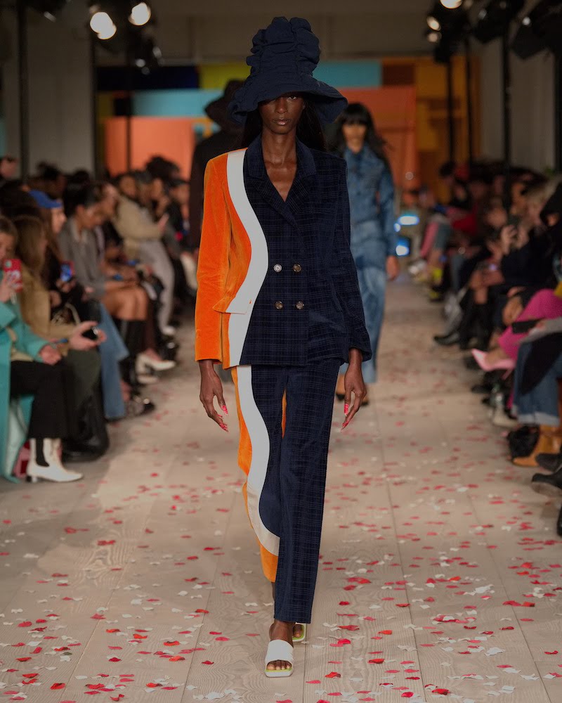 Through the pandemic, Priya Ahluwalia has established herself as a maestro of fashion film. She’s made five in total, each as warm, inclusive and community-driven as her pre-pandemic physical presentations. Stepping back into the thick of it, the highly decorated designer made her highly-anticipated catwalk debut yesterday afternoon, looking to her Nigerian and Indian heritage through Nollywood and Bollywood cinema.