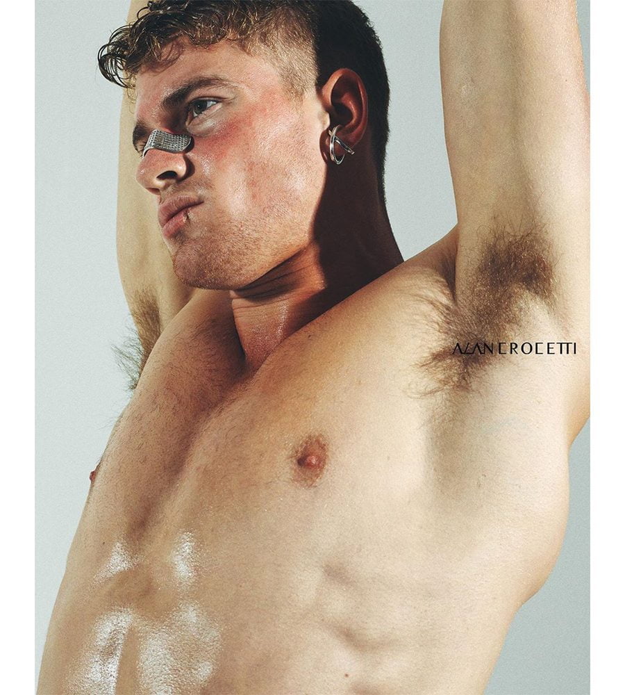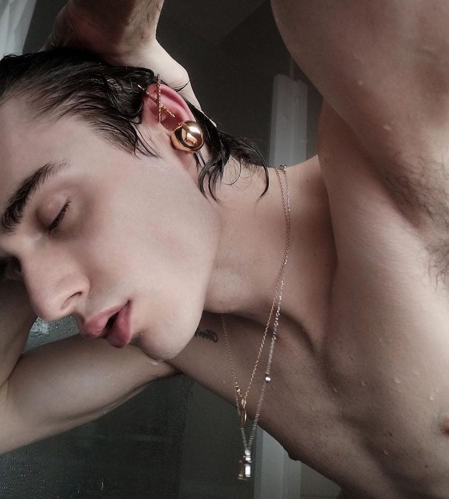 “When I was 18, I told my dad I was no longer pursuing a career as a doctor, and instead I was going to be a fashion designer,” he says. He went on to study womenswear at Central Saint Martins, before dropping out just a week before graduation due to a disagreement.“I liked all facets of design from a very young age, but I was also into drama, music and anatomy,” he says. The visual delight of his digital presence, thanks to the buff boys in his homoerotic campaigns, also transforms into sales, his criss-cross Space ear cuffs being a clear favourite among young twinks and the ladies who lunch.
