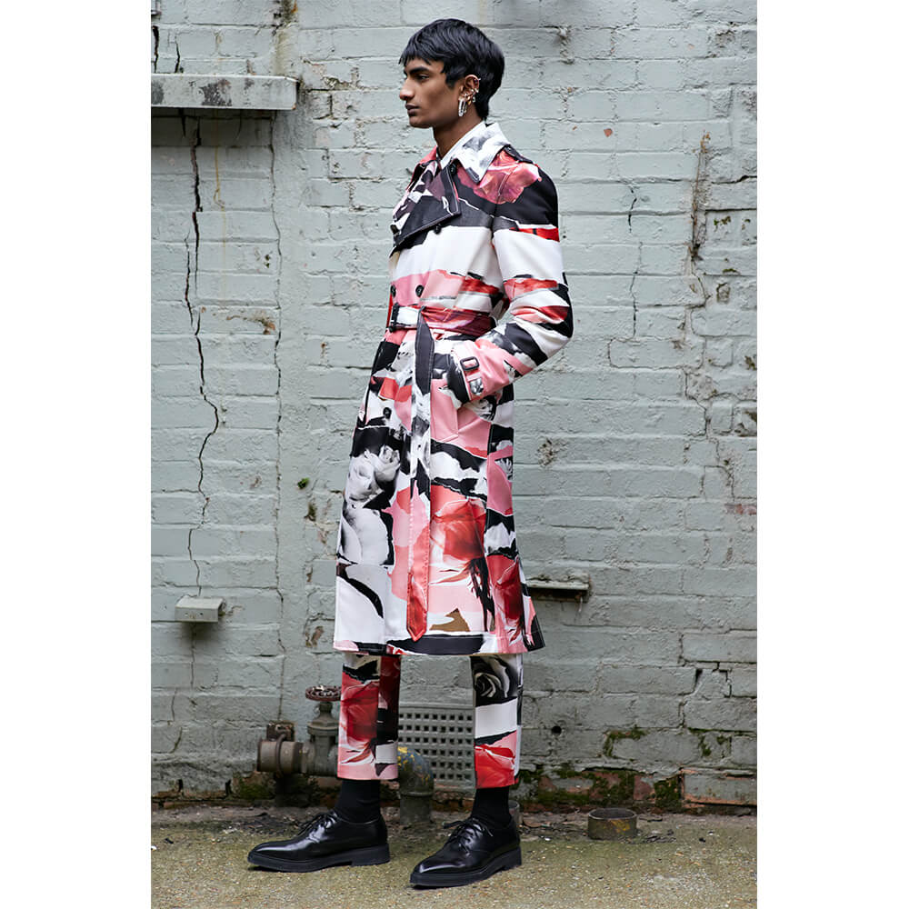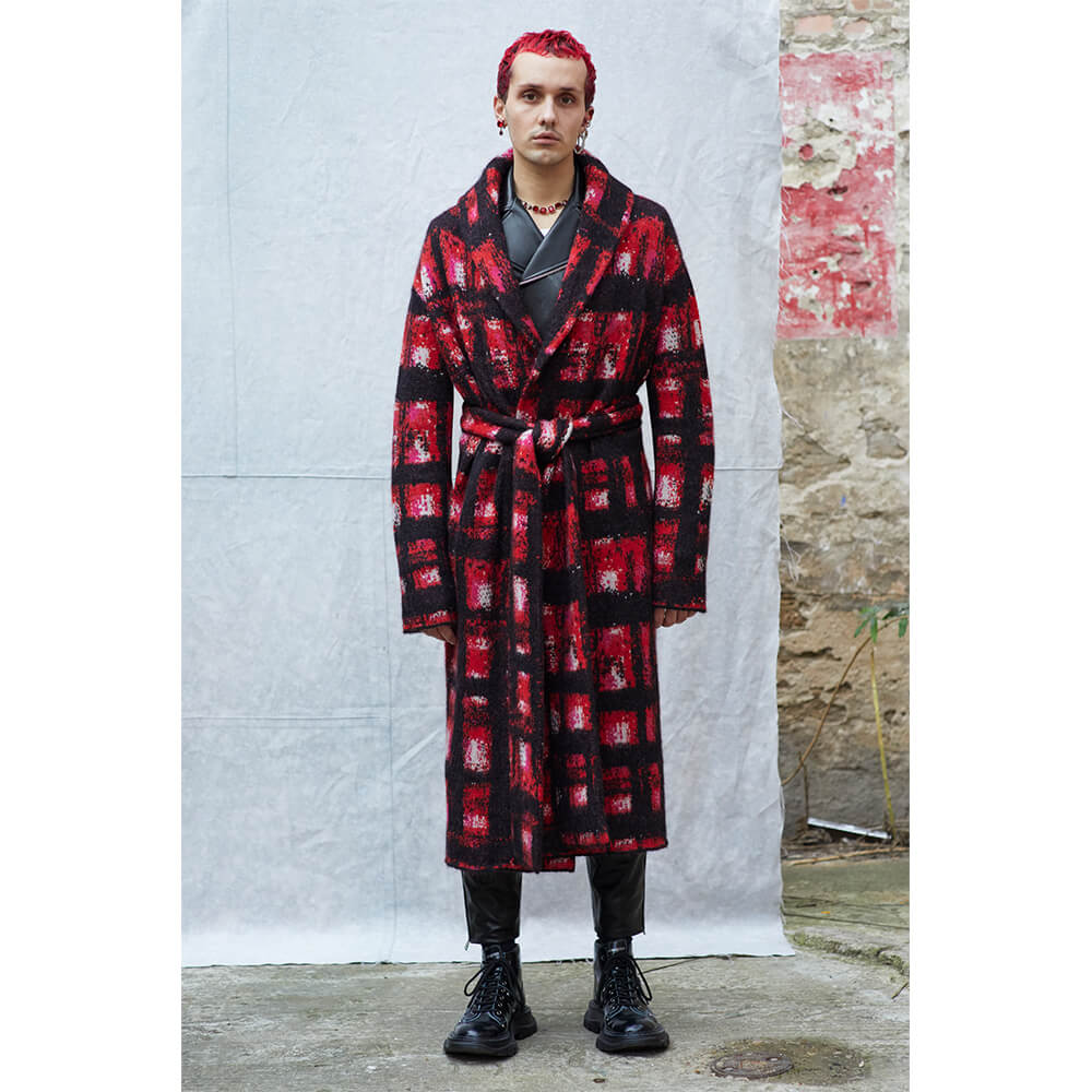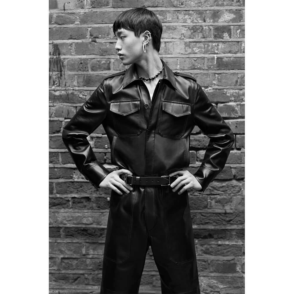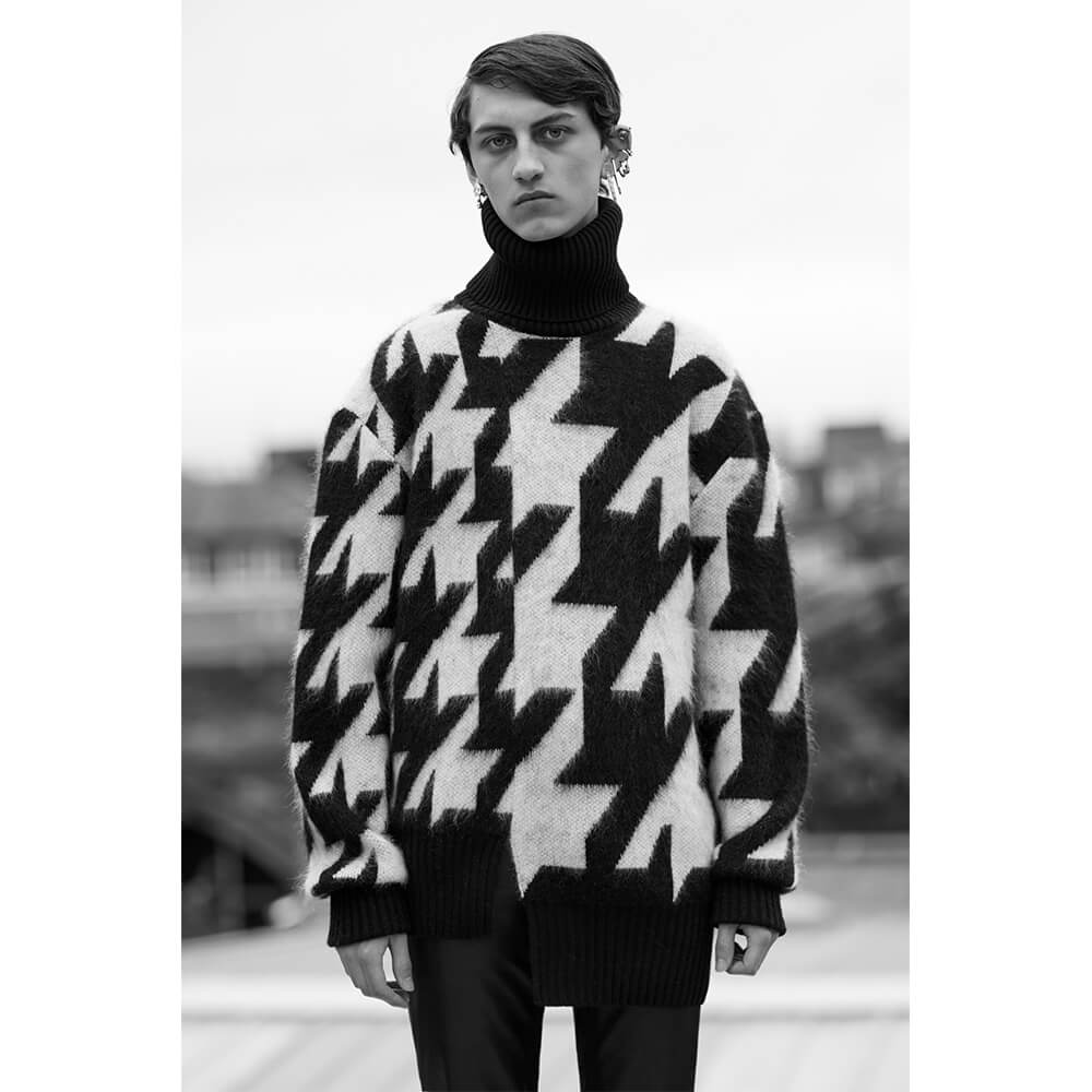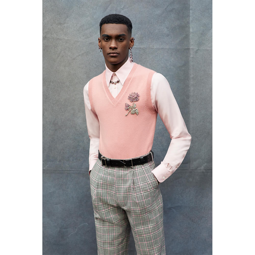 Taking inspiration from the North and Northern Soul, building on her last women’s collection, Sarah Burton veiled the rough, post-war depression with a sense of optimism and creative freedom of the 1980s New Wave. The greyness of steelworks and docks meets the electric energy of The Smiths, New Order and Joy Division. Instead of a documentarian vision of the North in a certain time period, Alexander McQueen’s AW19 menswear collection sums up the romanticised notions of this unique area into a collection of rich, embellished and perfectly-tailored clothes. Suits obviously take the leading word, as it’s usually the case with McQueen – from rough plaids in wool to delicate silks covered in oversized floral prints. Traditional silhouettes get a new, subversive take as feminine and masculine elements collide. Leather pieces and trench coats complete a fantasy wardrobe of a 21st century man with a nostalgia for the past. Turning the frown upside down, all the longing for the days that came before is repackaged into utopian beauty. The final two looks of the collection hit peak couture, with suit jackets covered in crystals and chains, reflective of a 1950s ballroom chandelier.