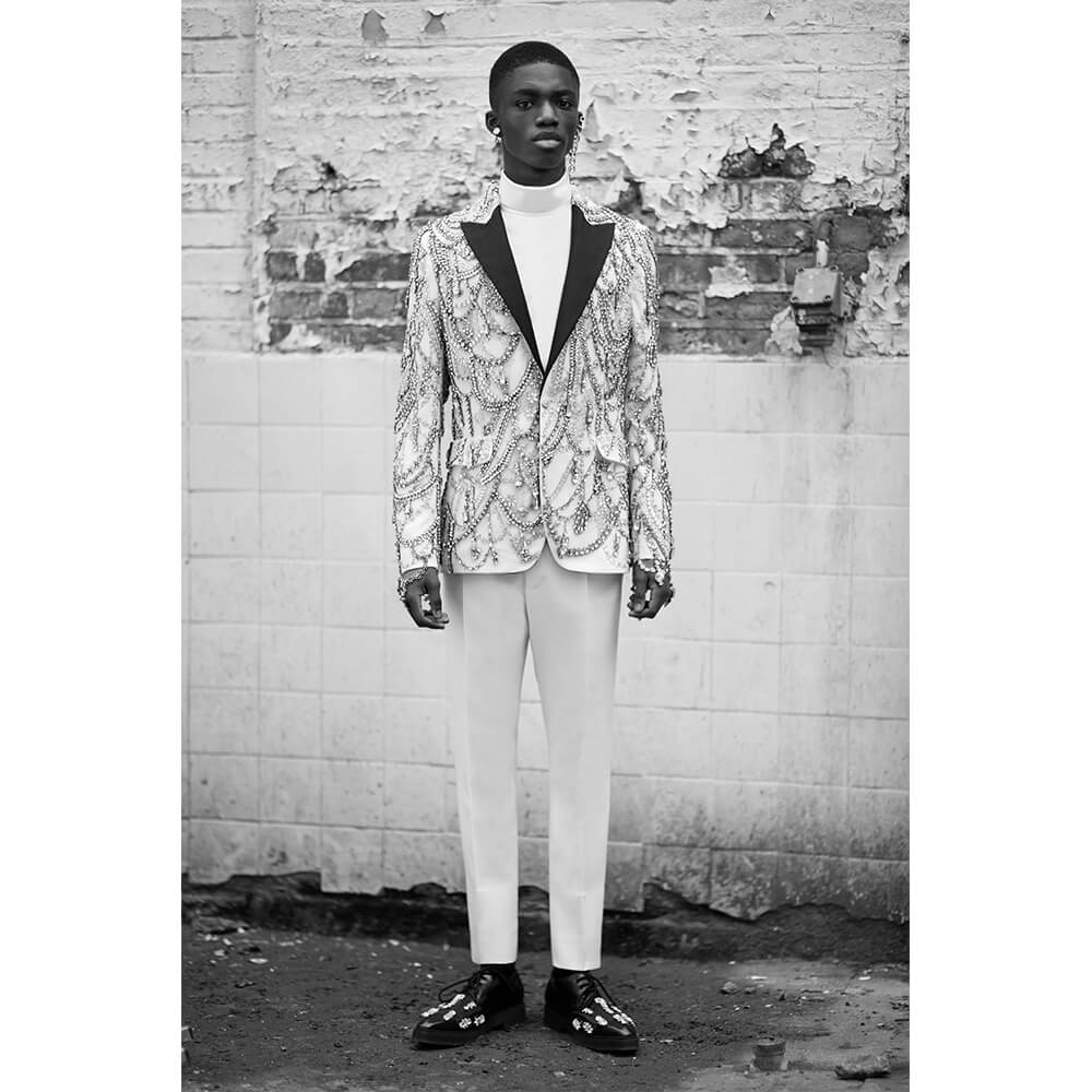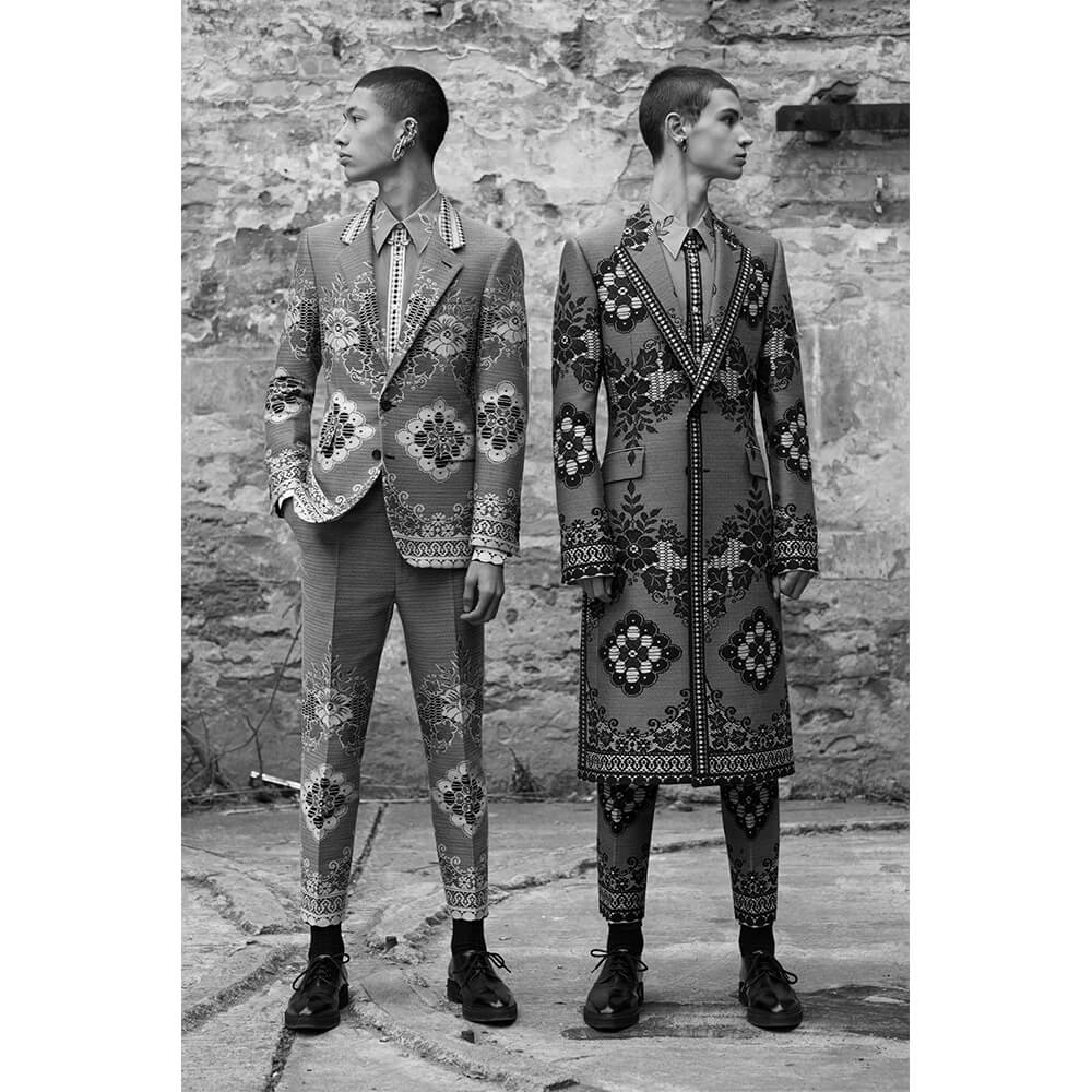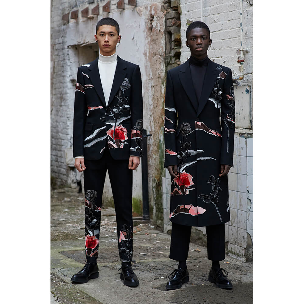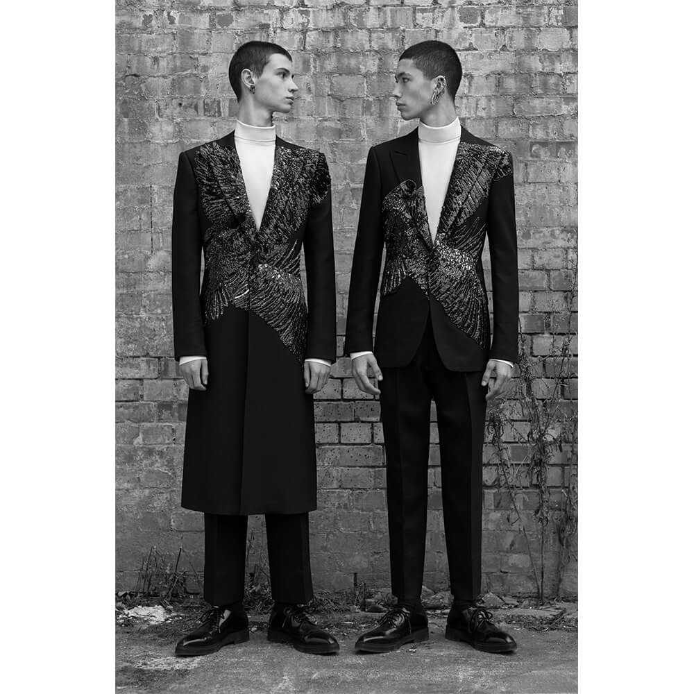Knock-knock. Who’s there? A menswear collection of tailored perfection, hailing directly from the mind of Sarah Burton. Dropping totally out of the blue, without a sign or explanation, Alexander McQueen have just released a men’s lookbook for AW19. But at the end of the day, these couture-like levels of beauty don’t need no explanation. Choosing to skip on showing the collection on the catwalk this past season, Burton could have taken this as an opportunity to present something simple and subdued, perhaps a collection of essentials with the McQueen signature. You know, a black suit with a subtle detail or a funky shoe. But that would be expected and boring. Alexander McQueen was never expected or boring, and neither is Burton,