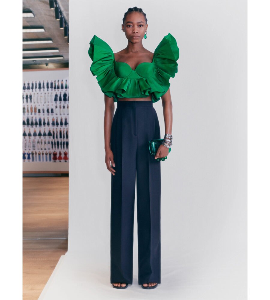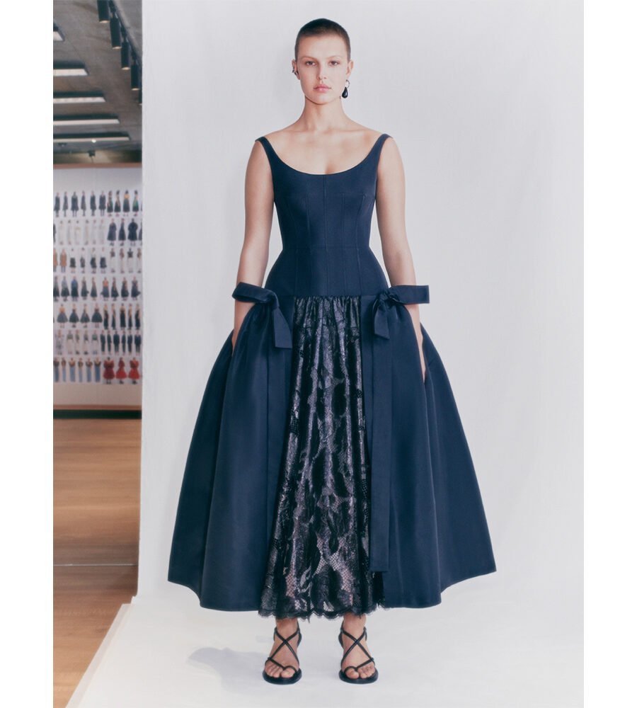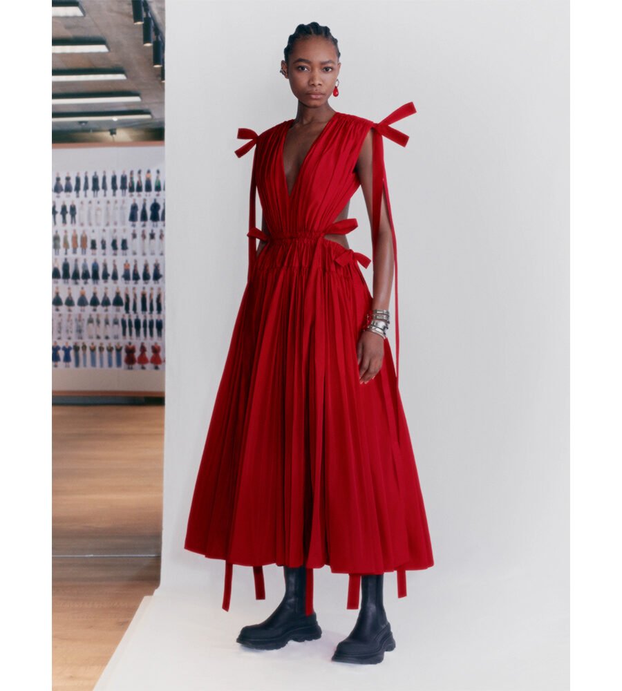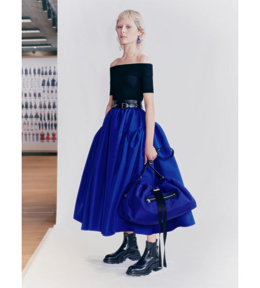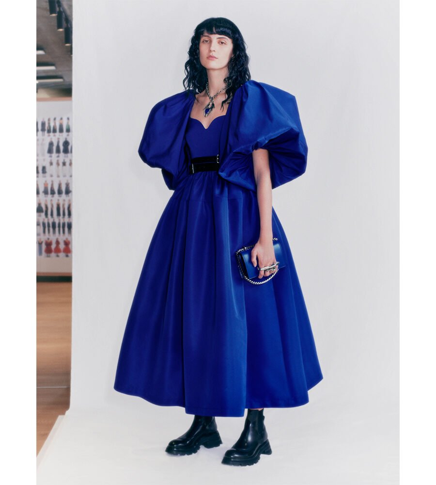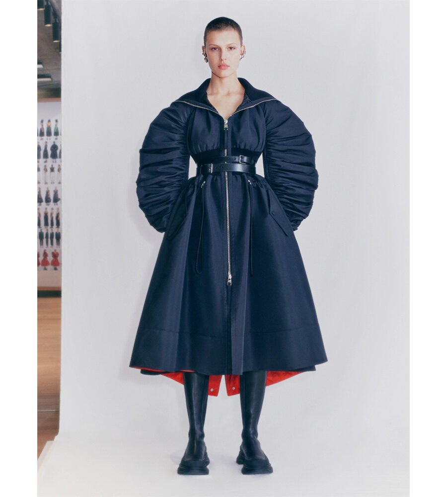Sarah Burton lays out codes of the brand so clearly that every piece thrills with that special McQueen DNA. Couture-level embroidery and cut sit alongside her signature, hybridised approach to design, a strong menswear influence and an unmistakable McQueen silhouette that embodies a powerful femininity. The pre-collection brings drama with cocoon-sleeved coats that are a cross between a mod parka and evening gowns. Another stunning coat melds a classic Crombie with a flight jacket.