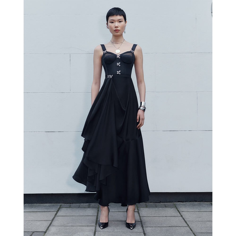 When concocting her latest pre-fall women’s collection, Alexander McQueen’s Sarah Burton wanted decipher new ways of engaging with the dialogue of her designs. In doing so, the creative director and her team turned to 12 renowned artists to each create a body of work in response to this season’s looks, which include crushed silver polyfaille frocks, arymetric double-breasted blazers and scalloped-edged slip dresses fashioned from Welsh leather.
