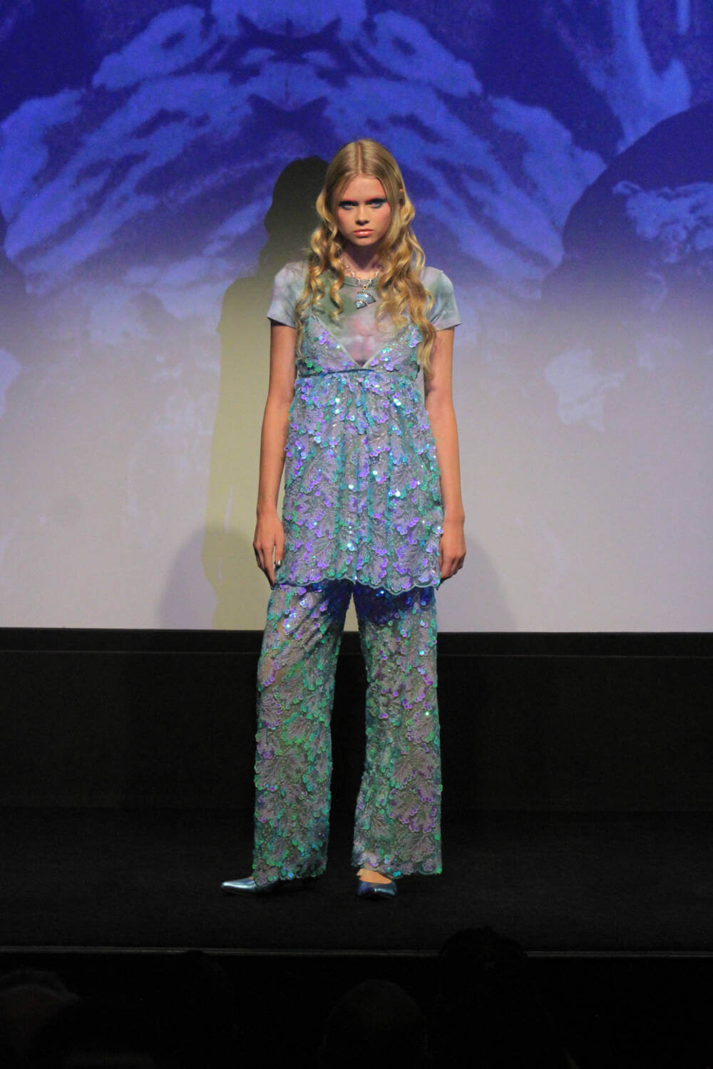 Anna Sui‘s latest collection dived deep into the iridescence and motley colours of the ocean. Inspired by the designer’s fascination with Australia’s Gold Coast, as well as a multitude of underwater-themed films like The Kingdom of Fairies and Under the Sea by George Melies – the featherlight fabrics and undulate patterns that rippled throughout made it a complete and total celebration of the sea. Sui’s vision of a vivid underwater world unfurled as if a kaleidoscope of exotic fish, coral and mermaids were all dancing in synchronicity, and came to life with an air of carefree whimsy – it was utterly Anna Sui.