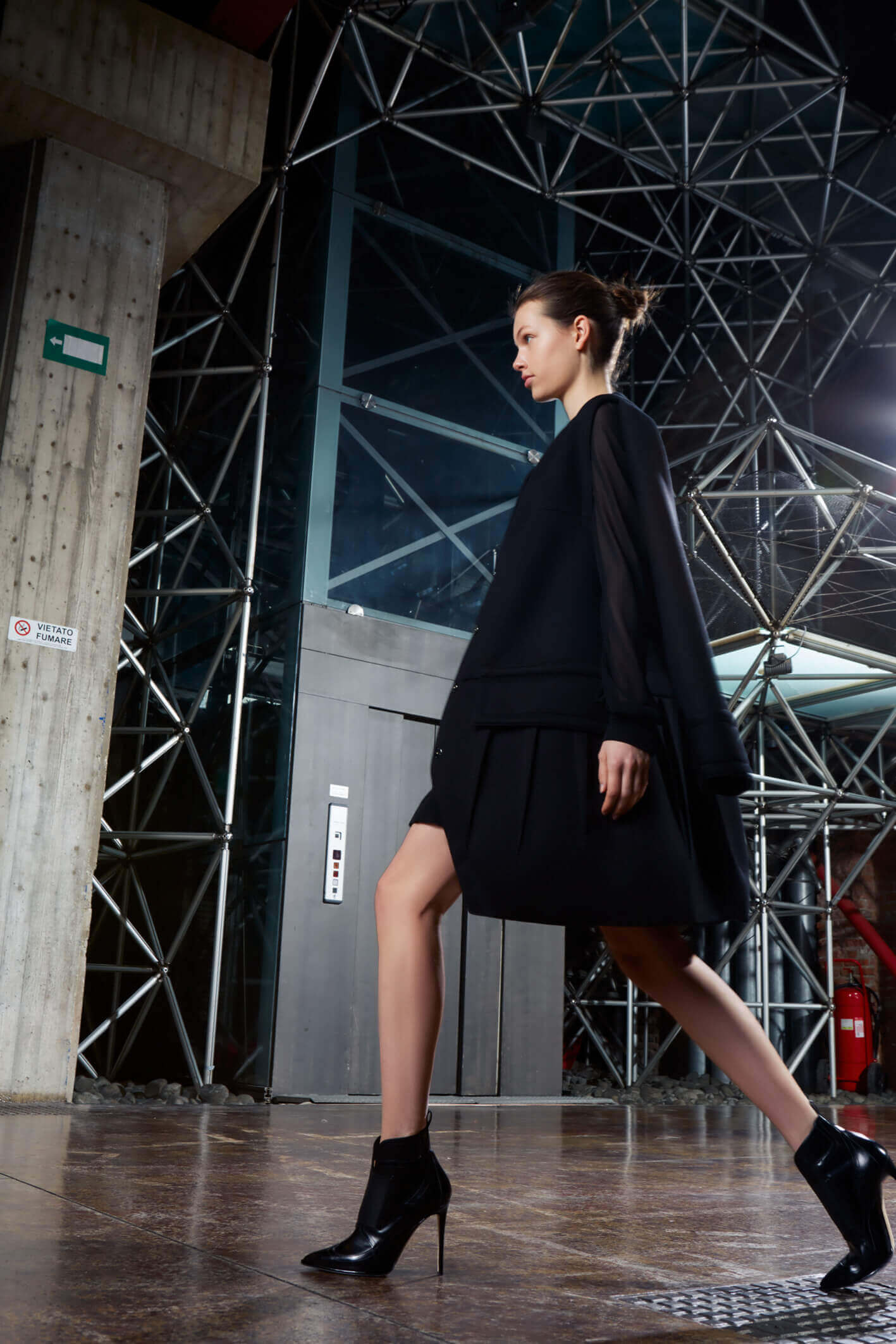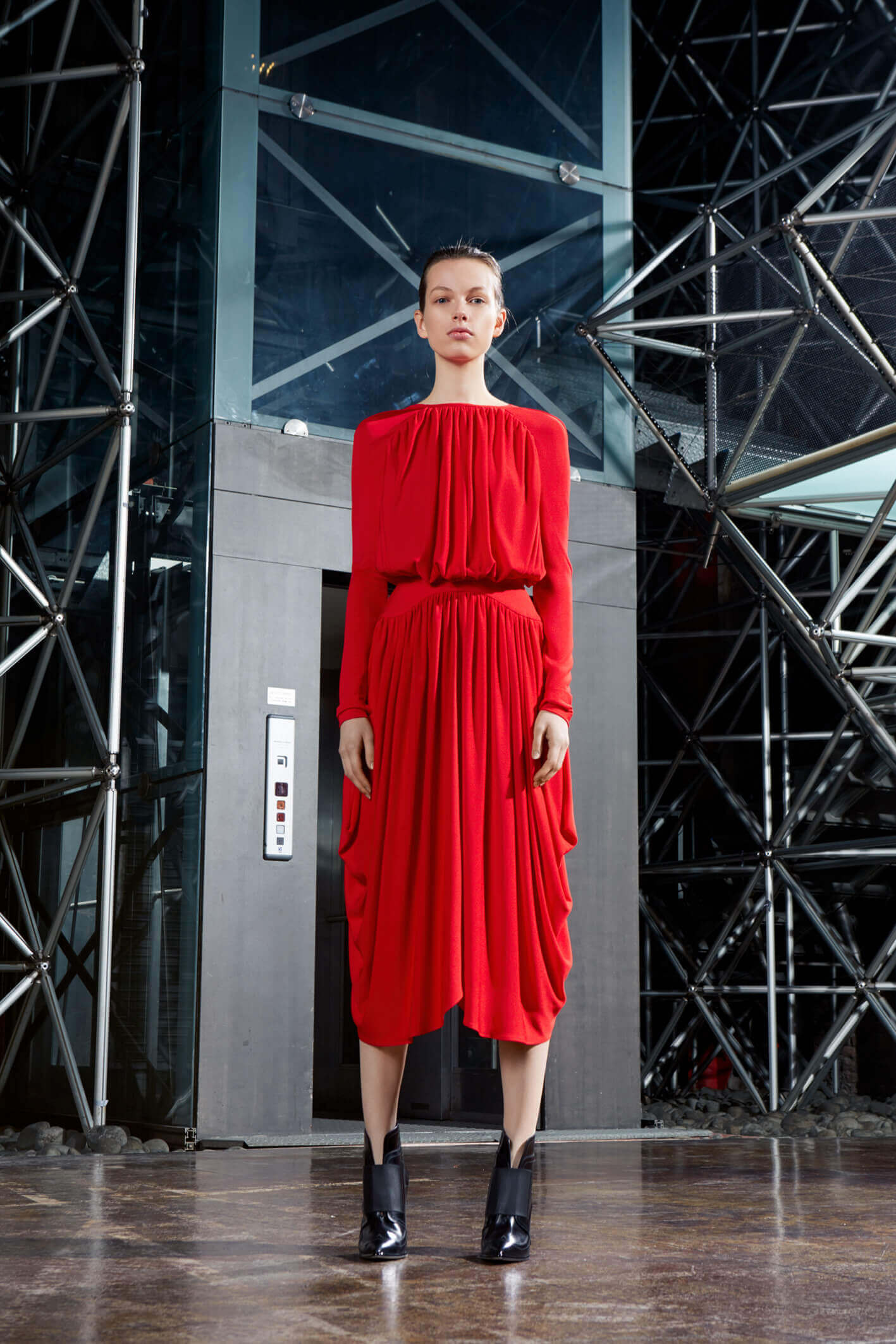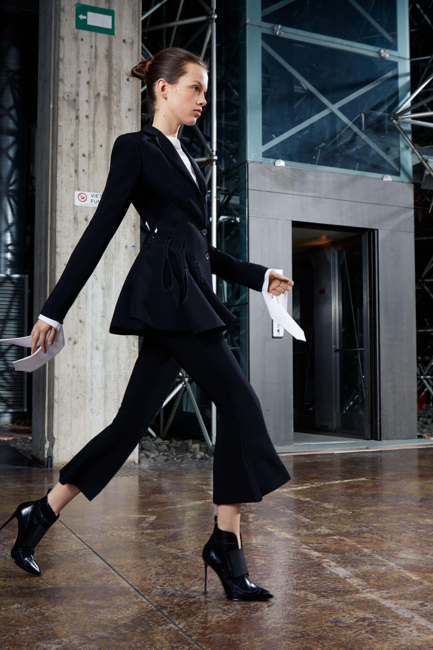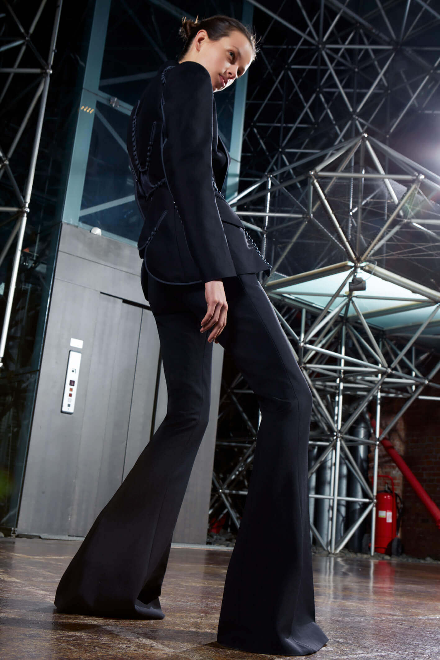 It can never be denied that Antonio Berardi is nothing if not a master of tailoring. What this man can’t do with a pair of scissors and a needle and thread doesn’t bare repeating. Think of this collection as a demonstration of his technical prowess. Sort of like a QVC segment selling a magic mop which could absorb a flooded suburb and only need to be wrung out once. Whether your a fan of QVC, or mops for that matter, or not, you have to admit thats pretty impressive. All the usual Berardi signatures are here, sharp, shapely suiting, thats been given a delicate hint of femininity in fit and flare waists that mimic the kicky hemmed trousers with which it’s paired, a racey lace up detail sneaking it’s way round the torso. Layered ruffles, complete with tear drop cut outs come in floor grazing and thigh skimming lengths and show a more casual approach to Berardi’s usual high octane va-va-voom by being paired with wide yet shrunken ribbed knits, whereas studded skater skirts have you frantically Googling for a Dancing on Ice application form. As Berardi would surely say himself, he likes a strong and confident lady who’s not afraid to make herself heard. Feminine but in control. She’s certainly no wallflower.