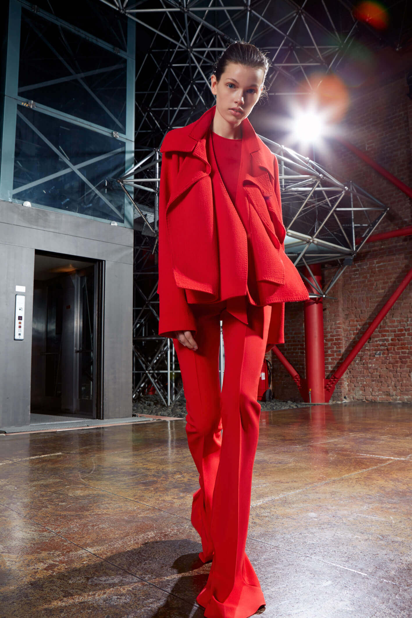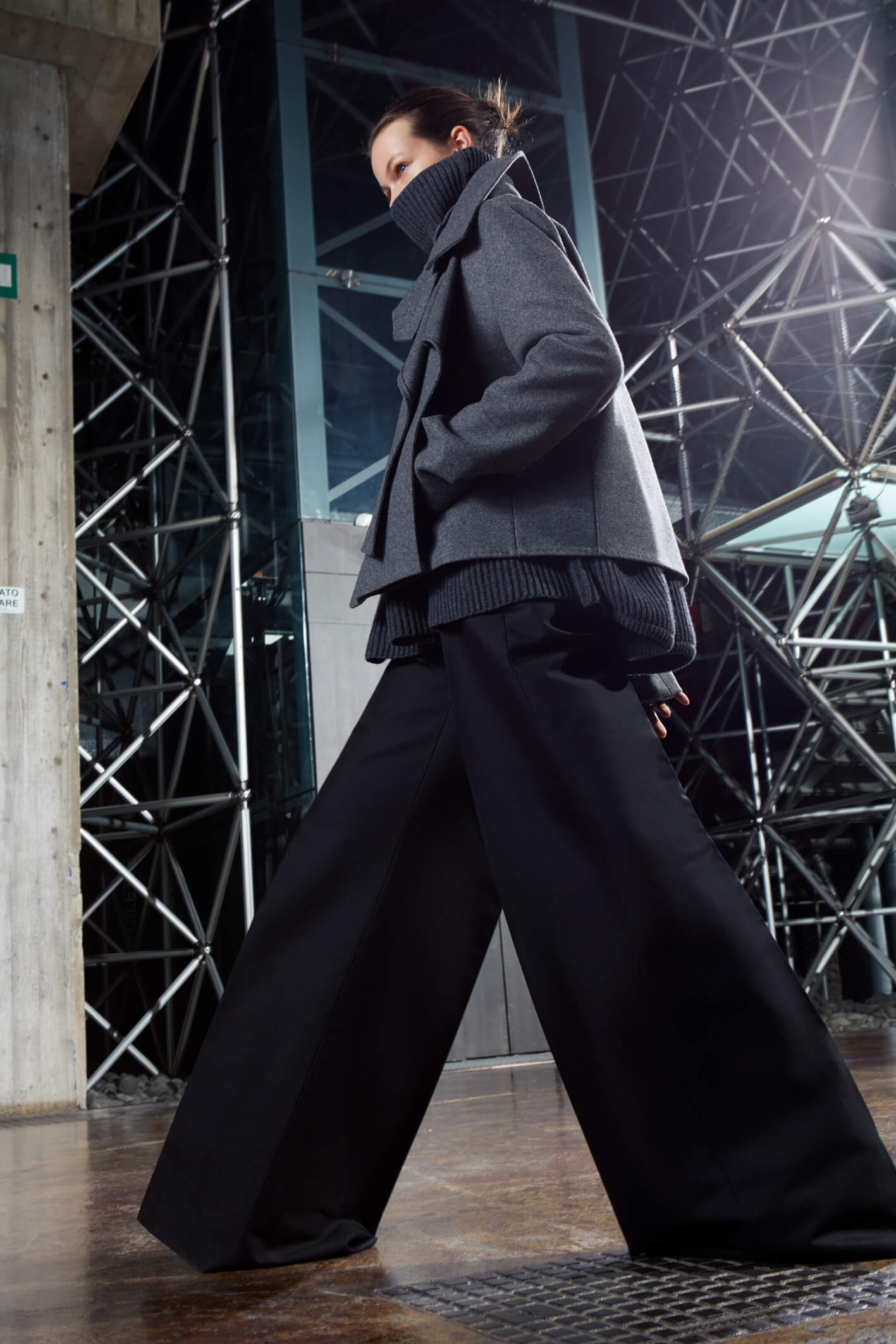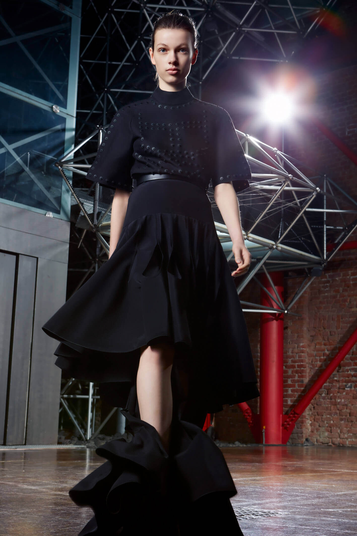 It can never be denied that Antonio Berardi is nothing if not a master of tailoring. What this man can’t do with a pair of scissors and a needle and thread doesn’t bare repeating. Think of this collection as a demonstration of his technical prowess. Sort of like a QVC segment selling a magic mop which could absorb a flooded suburb and only need to be wrung out once. Whether your a fan of QVC, or mops for that matter, or not, you have to admit thats pretty impressive. All the usual Berardi signatures are here, sharp, shapely suiting, thats been given a delicate hint of femininity in fit and flare waists that mimic the kicky hemmed trousers with which it’s paired, a racey lace up detail sneaking it’s way round the torso. Layered ruffles, complete with tear drop cut outs come in floor grazing and thigh skimming lengths and show a more casual approach to Berardi’s usual high octane va-va-voom by being paired with wide yet shrunken ribbed knits, whereas studded skater skirts have you frantically Googling for a Dancing on Ice application form. As Berardi would surely say himself, he likes a strong and confident lady who’s not afraid to make herself heard. Feminine but in control. She’s certainly no wallflower.