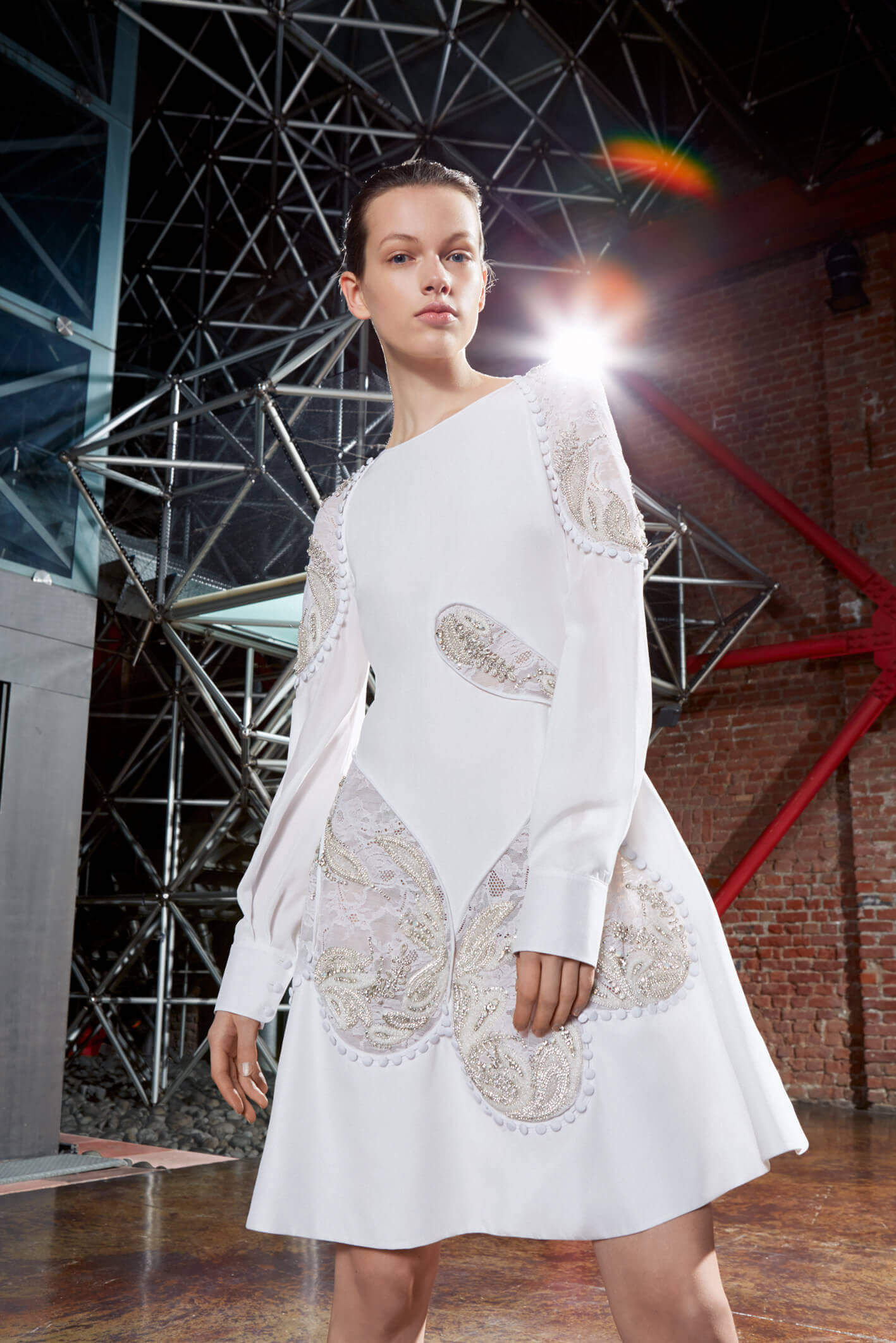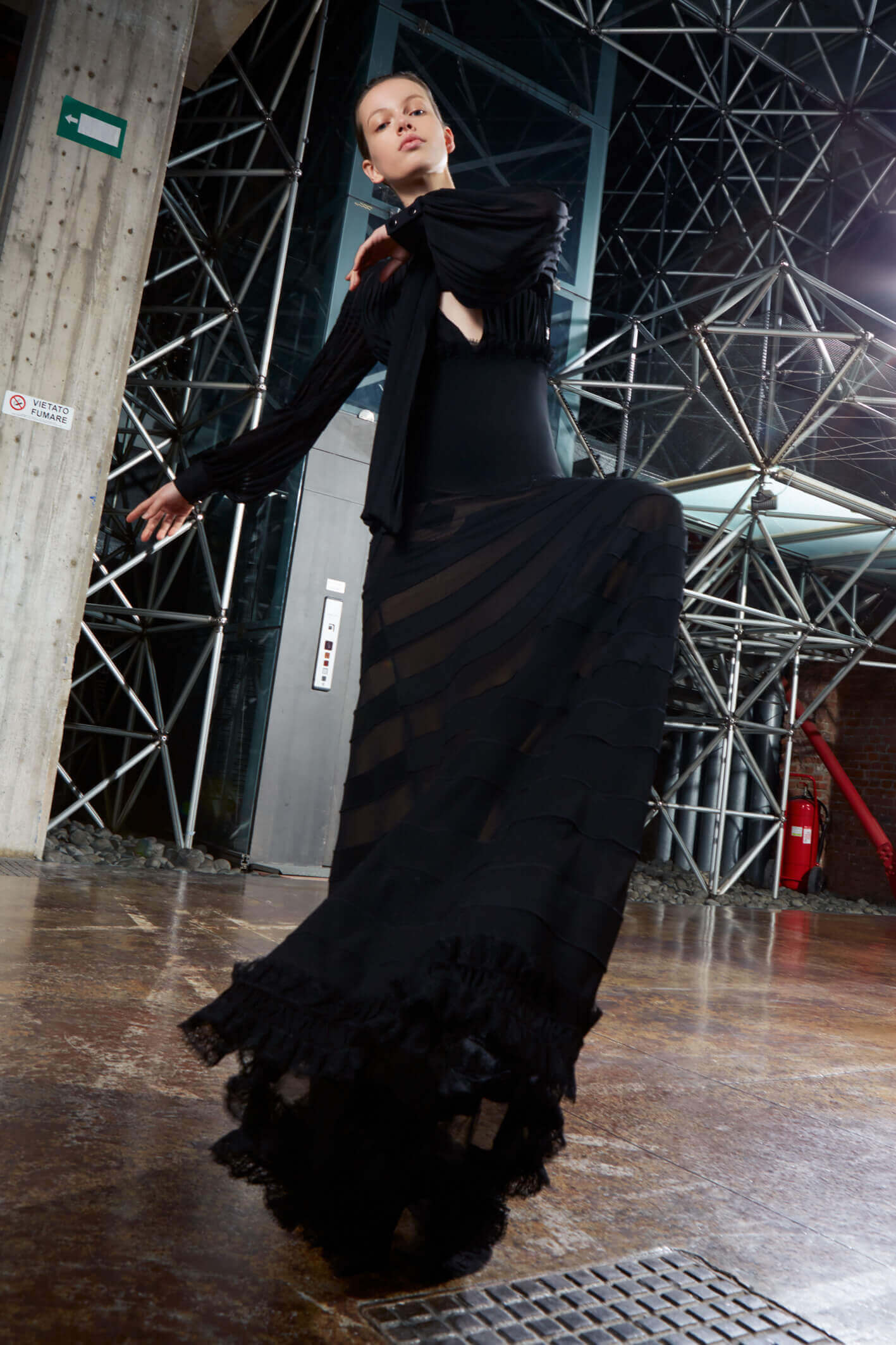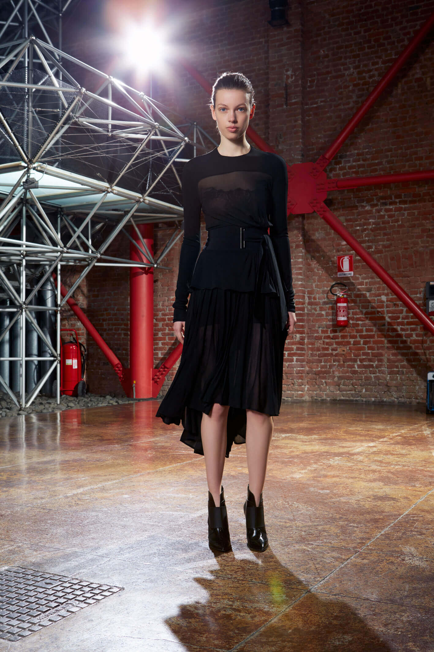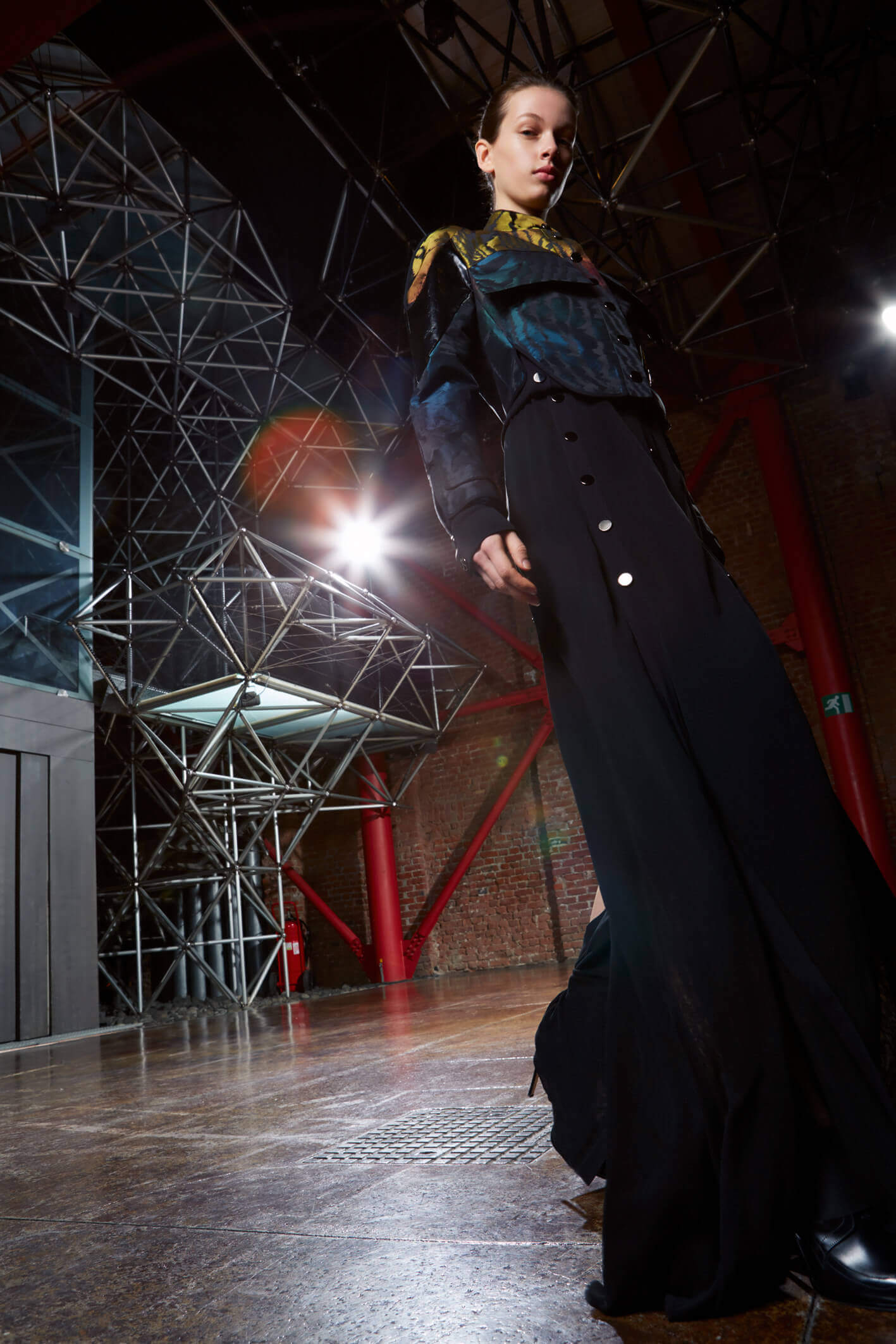 It can never be denied that Antonio Berardi is nothing if not a master of tailoring. What this man can’t do with a pair of scissors and a needle and thread doesn’t bare repeating. Think of this collection as a demonstration of his technical prowess. Sort of like a QVC segment selling a magic mop which could absorb a flooded suburb and only need to be wrung out once. Whether your a fan of QVC, or mops for that matter, or not, you have to admit thats pretty impressive. All the usual Berardi signatures are here, sharp, shapely suiting, thats been given a delicate hint of femininity in fit and flare waists that mimic the kicky hemmed trousers with which it’s paired, a racey lace up detail sneaking it’s way round the torso. Layered ruffles, complete with tear drop cut outs come in floor grazing and thigh skimming lengths and show a more casual approach to Berardi’s usual high octane va-va-voom by being paired with wide yet shrunken ribbed knits, whereas studded skater skirts have you frantically Googling for a Dancing on Ice application form. As Berardi would surely say himself, he likes a strong and confident lady who’s not afraid to make herself heard. Feminine but in control. She’s certainly no wallflower.