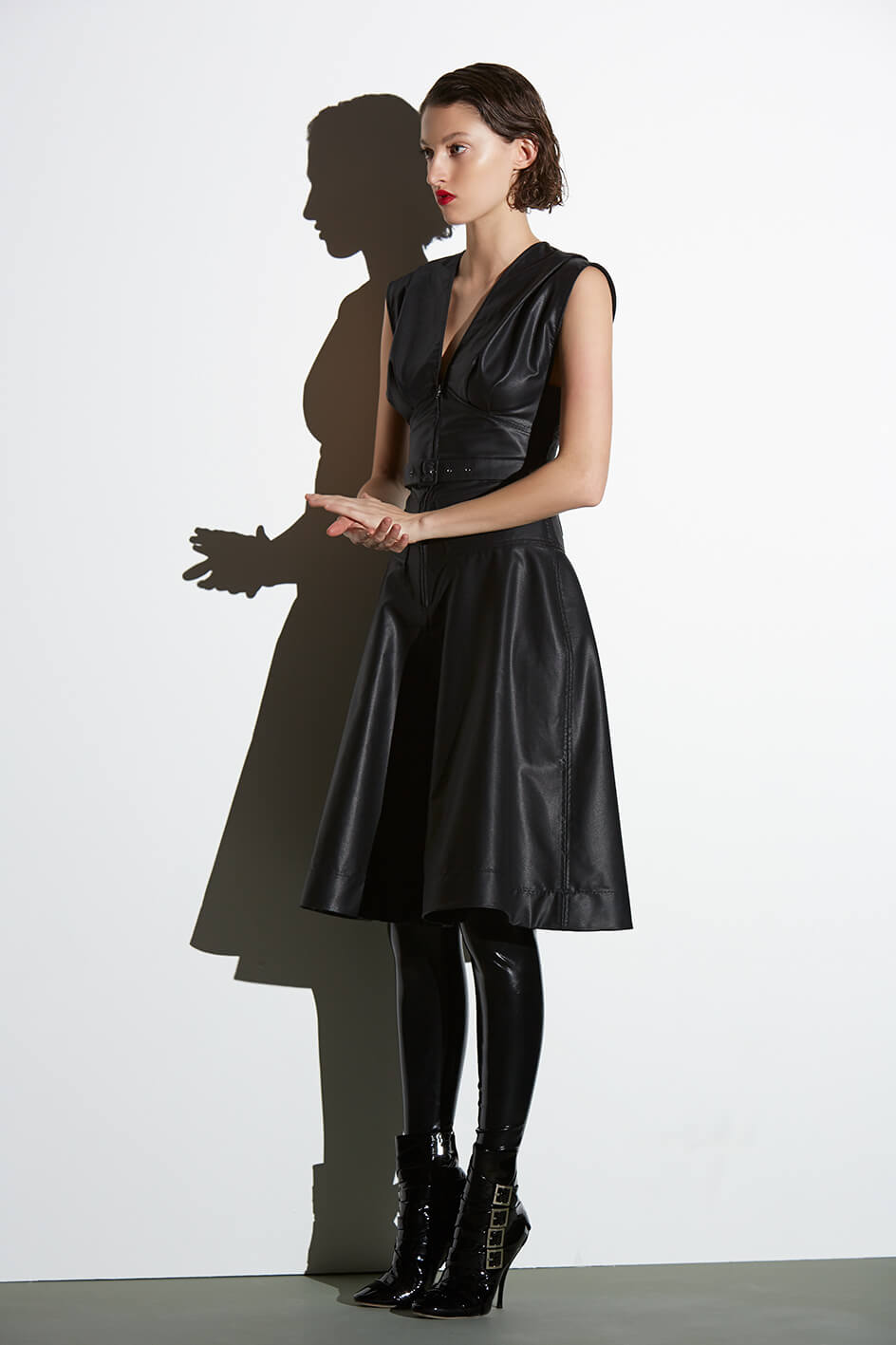 Pre collections typically contain the pieces that you really want to fill your wardrobe, and Antonio Berardi’s 2018 Pre-Fall offering might just break said wardrobe, with its covetable wares. Dresses, knits, coats, trousers, you name it, they got it- in prints, solids and leathers. And we could’t help but notice that everything would work rather well for those who have a slightly kinky side to them, no matter the season- it is styled up with some pretty mean looking latex, so someone clearly had S&M on their mind.