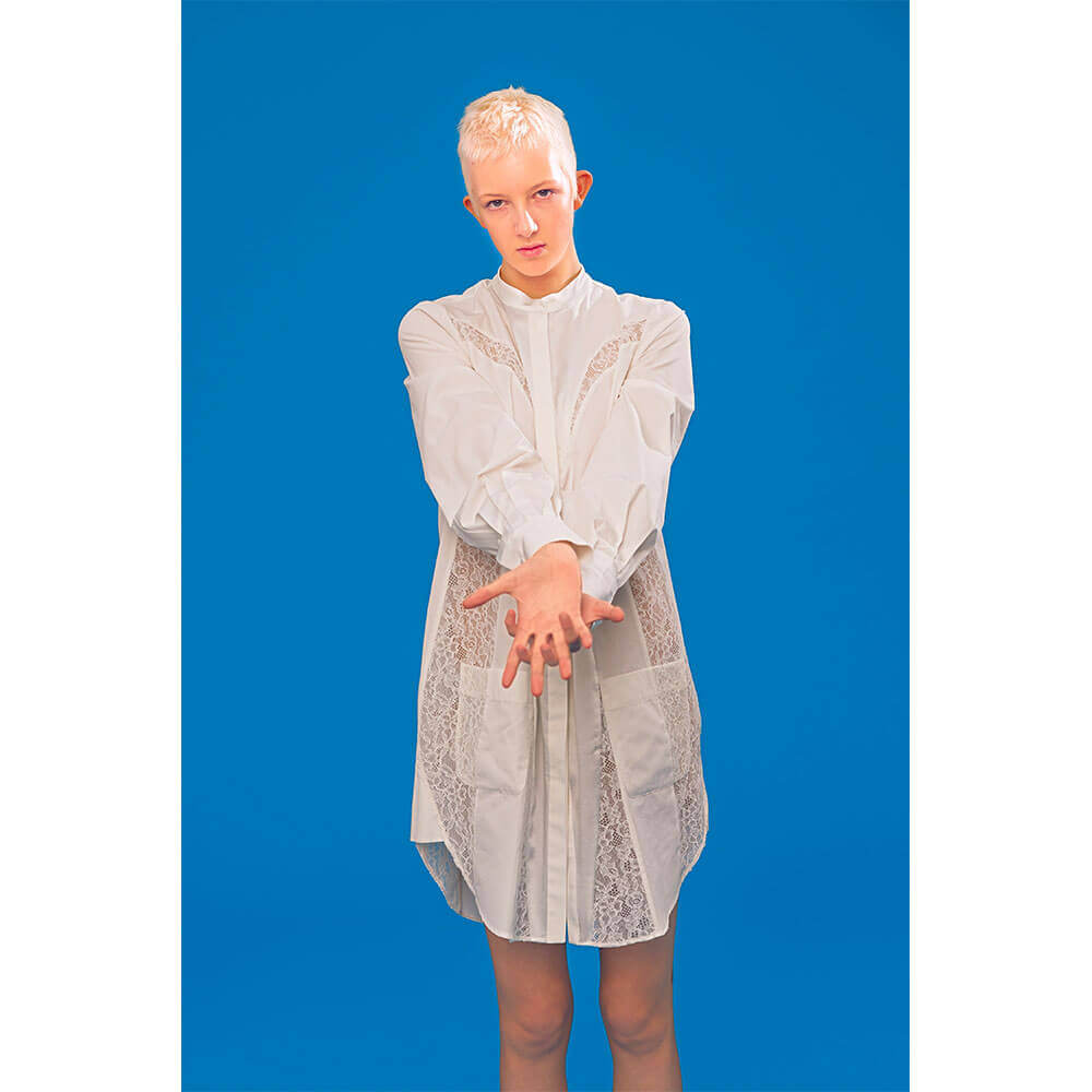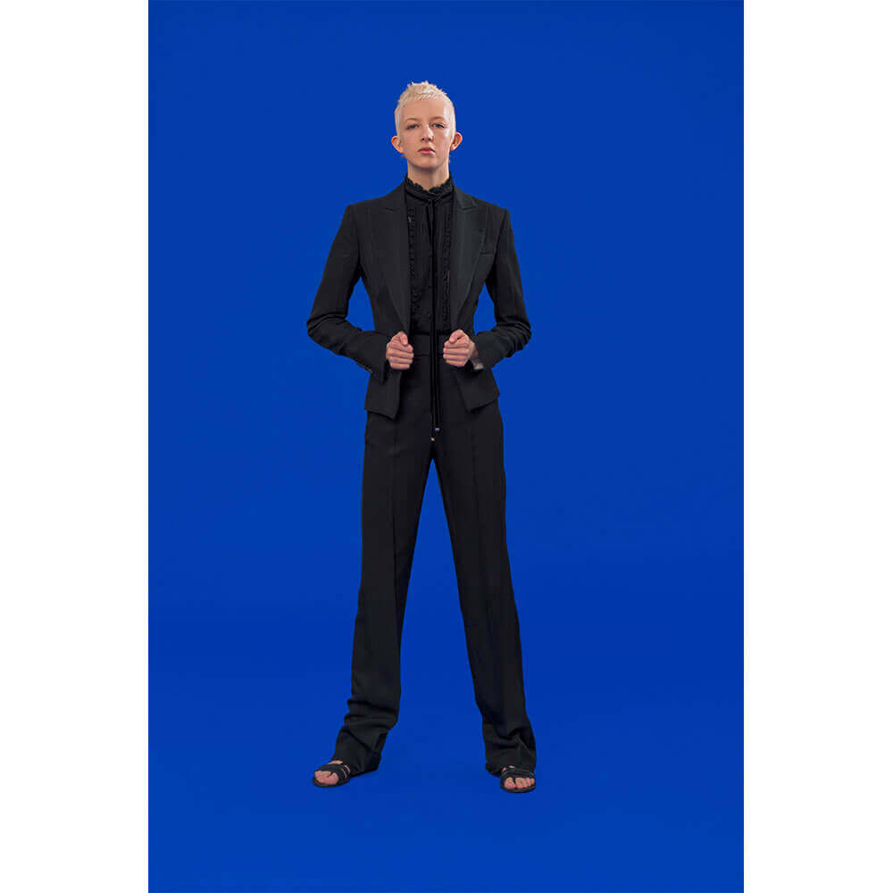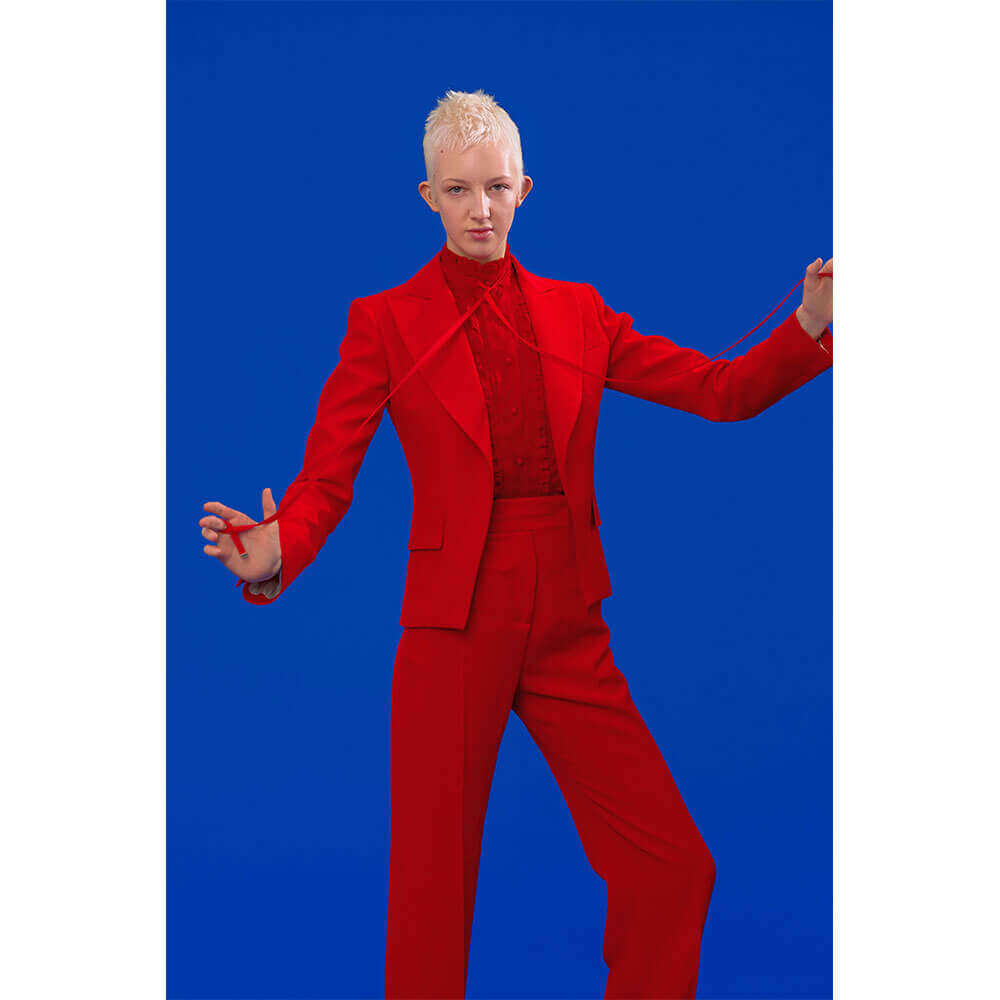Fashion week looks kind of cool and all… But when you’ve got seminal punk photographer Derek Ridgers shooting your collection instead of a traditional fashion week format, those cramped front rows and tiny bottles of Evian water look rather naff in comparison. Antonio Berardi has firmly avoided the hectic fashion week circuit for some seasons now – letting the clothes speak for themselves without the pyrotechnics. This time around, Berardi has enlisted Ridgers behind the lens to shoot a collection of playful silhouettes and sleek evening-wear. Inspired by angelic creatures and their multifaceted androgyny, 10+ cover star Finn Buchanan looks heavenly in an array of shirt dresses and gorgeously tailored suiting – all in soft-to-touch textures.