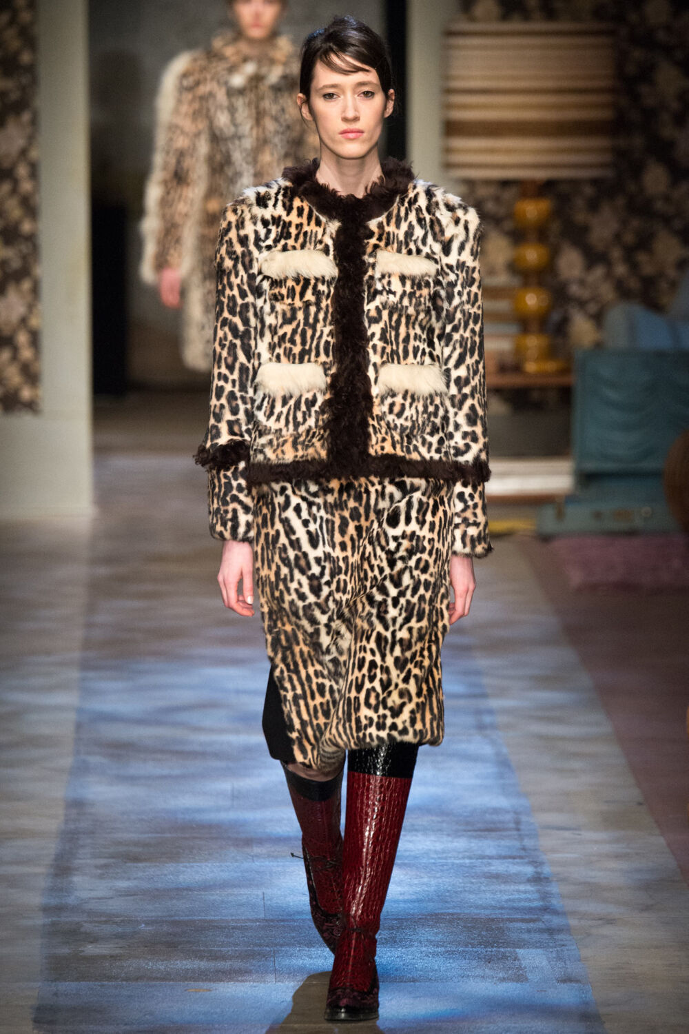 In his project for Frieze Masters entitled The Collector, Brown imagined how an intellectual’s flat would have looked in Paris during the political unrest of 1968. I was fascinated to create a character through environment as much as through the clothes. I imagined a woman coming home every night, in her riding boots or her grandmother’s gown. She might have ripped up some upholstery to make a ball gown or repaired an old ocelot coat with bits of shearling.”