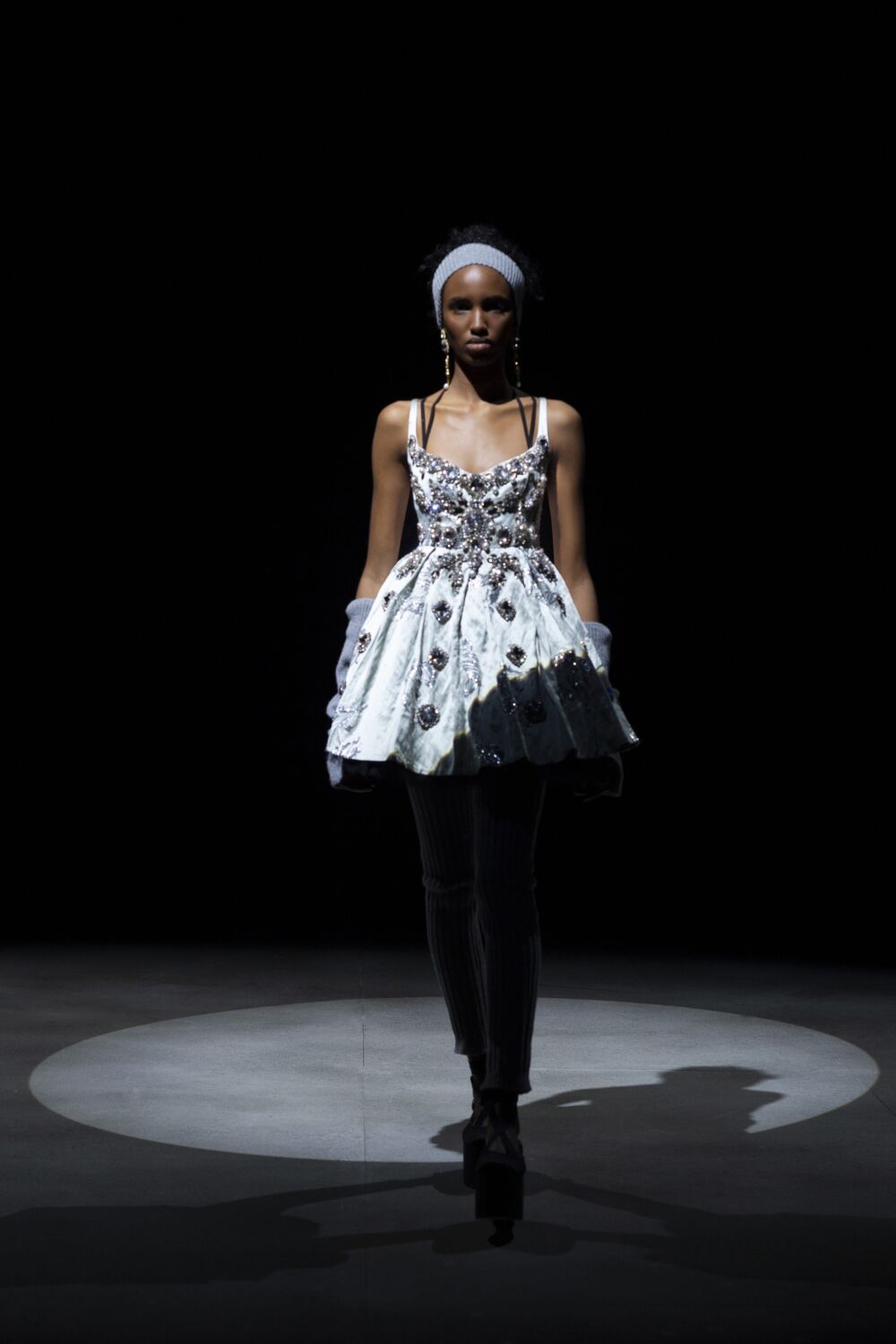 “For autumn/winter 2021, I was inspired by Margot Fonteyn, more specifically, the life of a dancer in the wings, this liminal space between onstage and offstage, between public and private. When I was working at the Royal Opera House, that was the moment I found so exciting. The dancers shifting around, criss-crossing, half dressed in what they wear during the day and half-dressed in their costumes.
