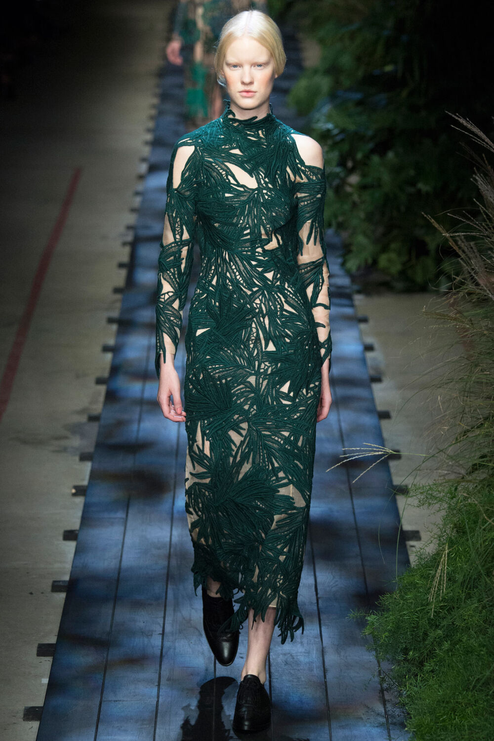 “For spring/summer 2015, I was inspired by the work of Marianne North, who was a Victorian botanist and explorer. For the show, we created a wild tropical greenhouse. Marianne North was this extraordinary woman who travelled the world documenting plants. I love the idea of this woman who is obsessed with one thing. I’m quite obsessive too. The starting point for the collection was this woman, and who she was.”