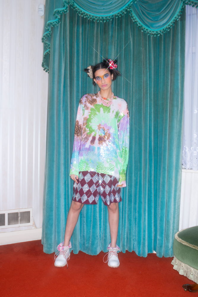 Still unable to travel back to India to be with his factory in New Dehli, with this collection, Ashish had to learn to embrace restrictions. “I think that there’s something so lovely about things being slightly lost in translation,” proclaims the designer over Zoom. “Often you end up with something new that you never imagined.”