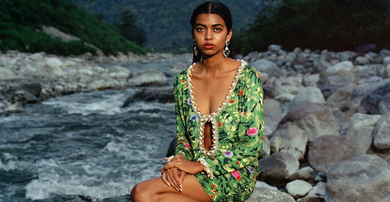 It was only after the final look was created, when Ashish realised one standout gown – featuring a swan swimming against a scenic background – subconsciously resembles a Ravi Varma painting of the Goddess Lakshmi, which hangs in the designer’s hallway. Another slew of looks – all beautifully striped – are a representation of the days Ashish wanted to be controlled, paired alongside a glamourous set of seventies going-out dresses for those moments he missed the dancefloor. “It was so therapeutic,” reflected the designer on the whole process. Not only has kitsch never looked so cool, but rather beautiful, too.