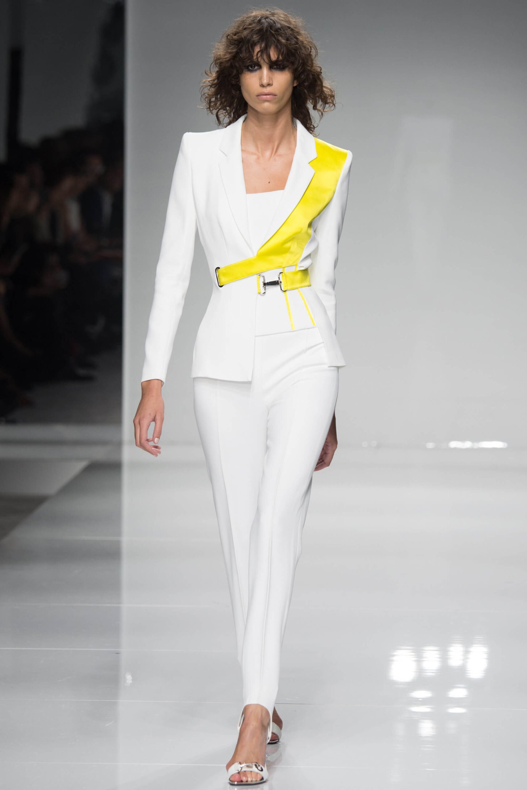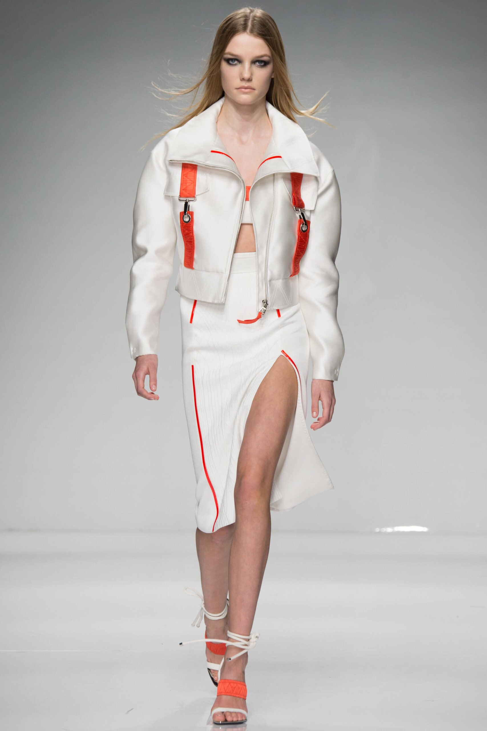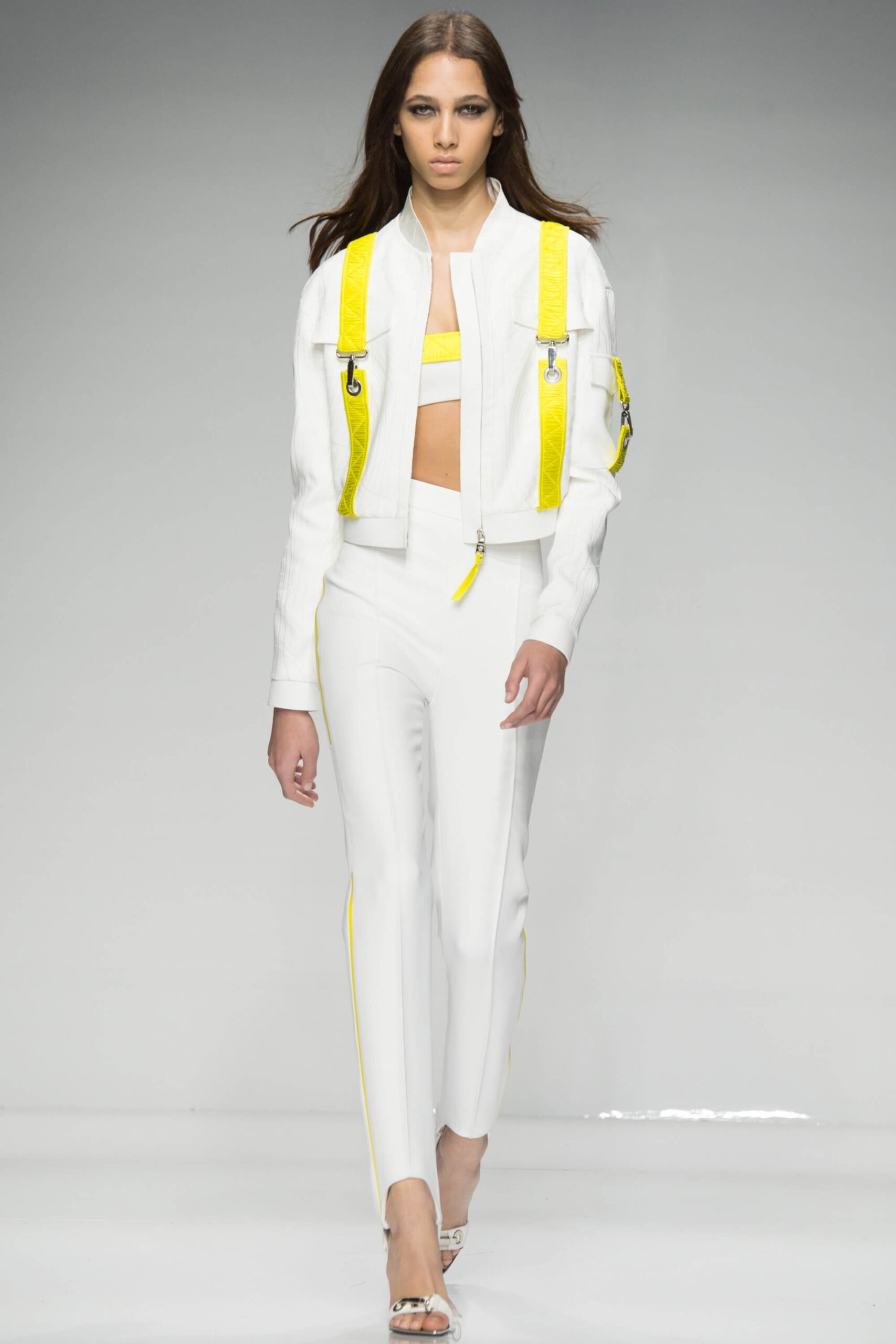 Has Donatella been watching Spiceworld? Because her Atelier Versace show – kicking off the spring/summer 2016 couture season – was a bit posh, definitely sporty, occasionally scary. Running in heels, anyone?! There was nothing babyish about it though, rather a new wardrobe for the powerful and mature Versace woman. Athletic couture was the theme, hence that sport stuff, the slick spikey white futurism, the flashes of neon. And the undeniable energy.