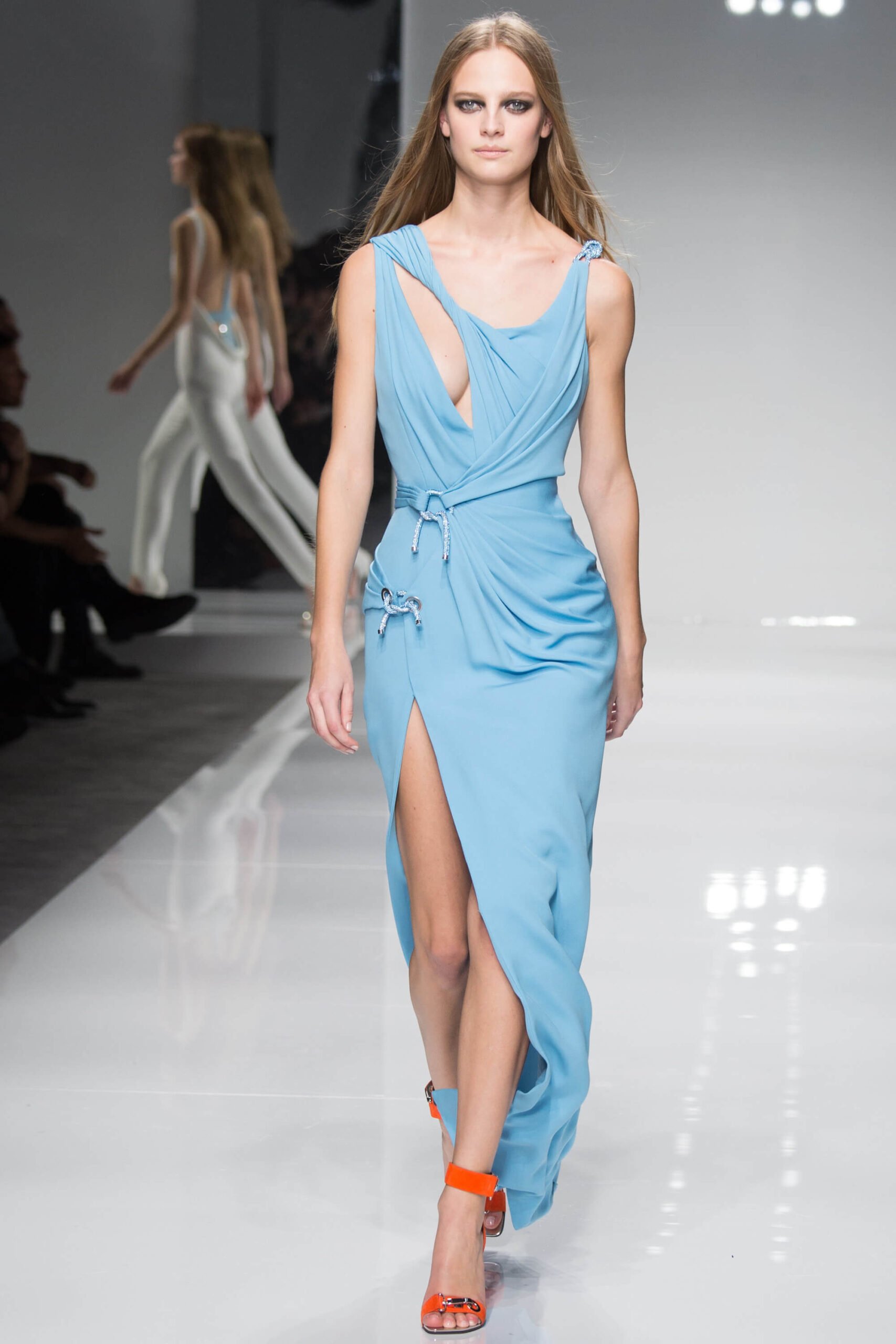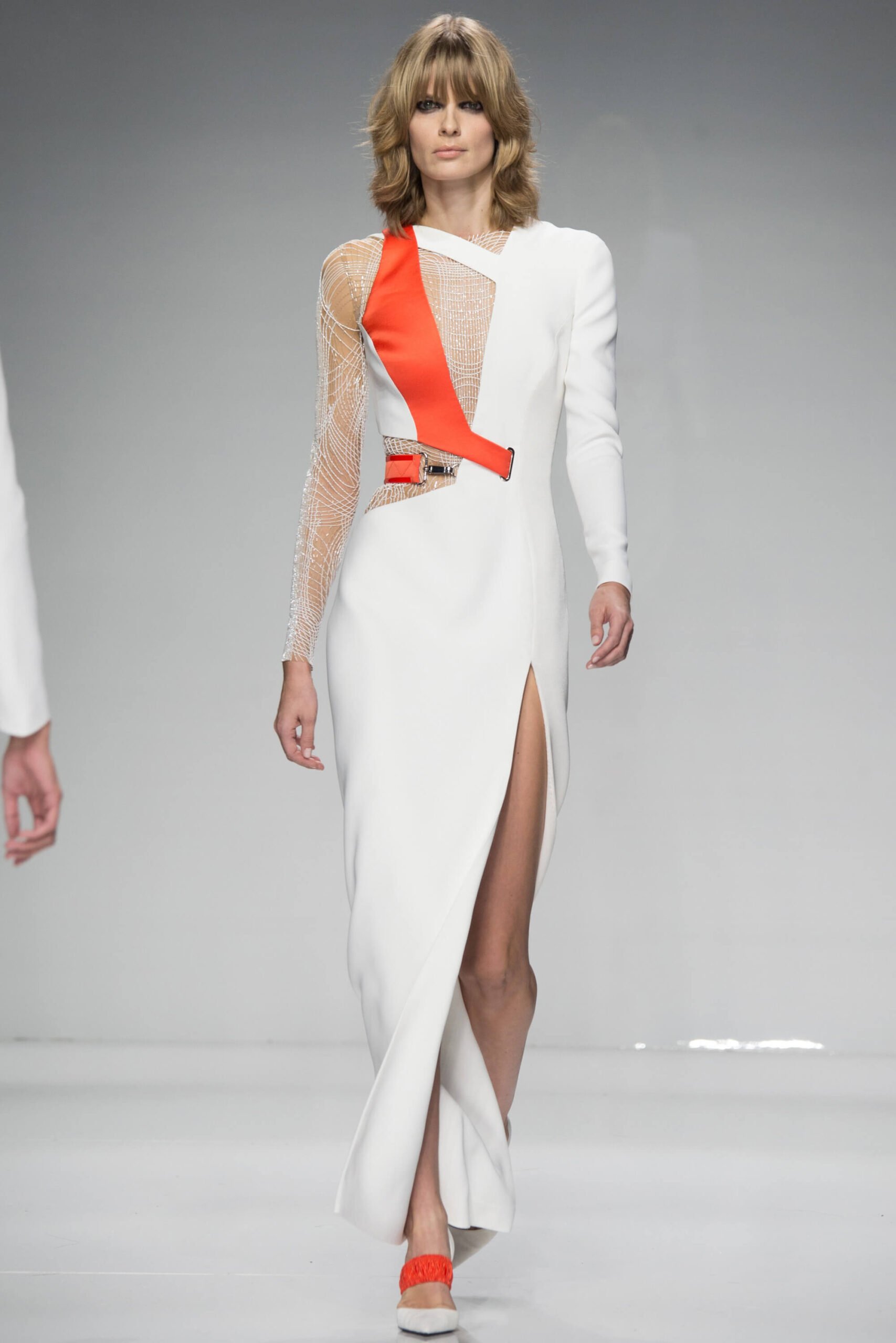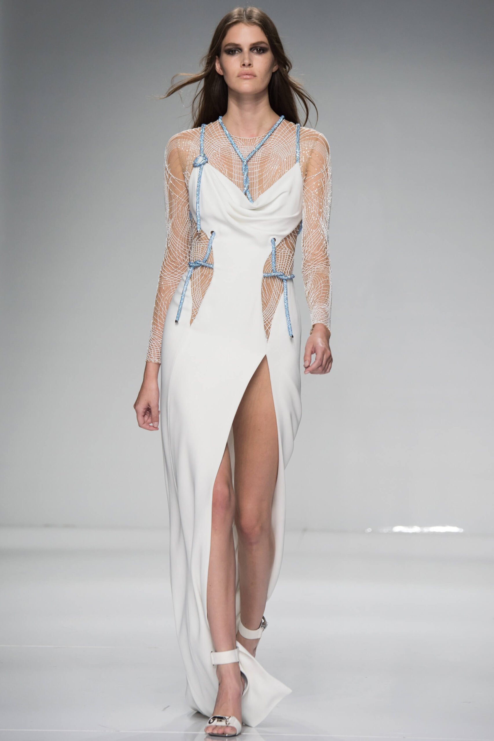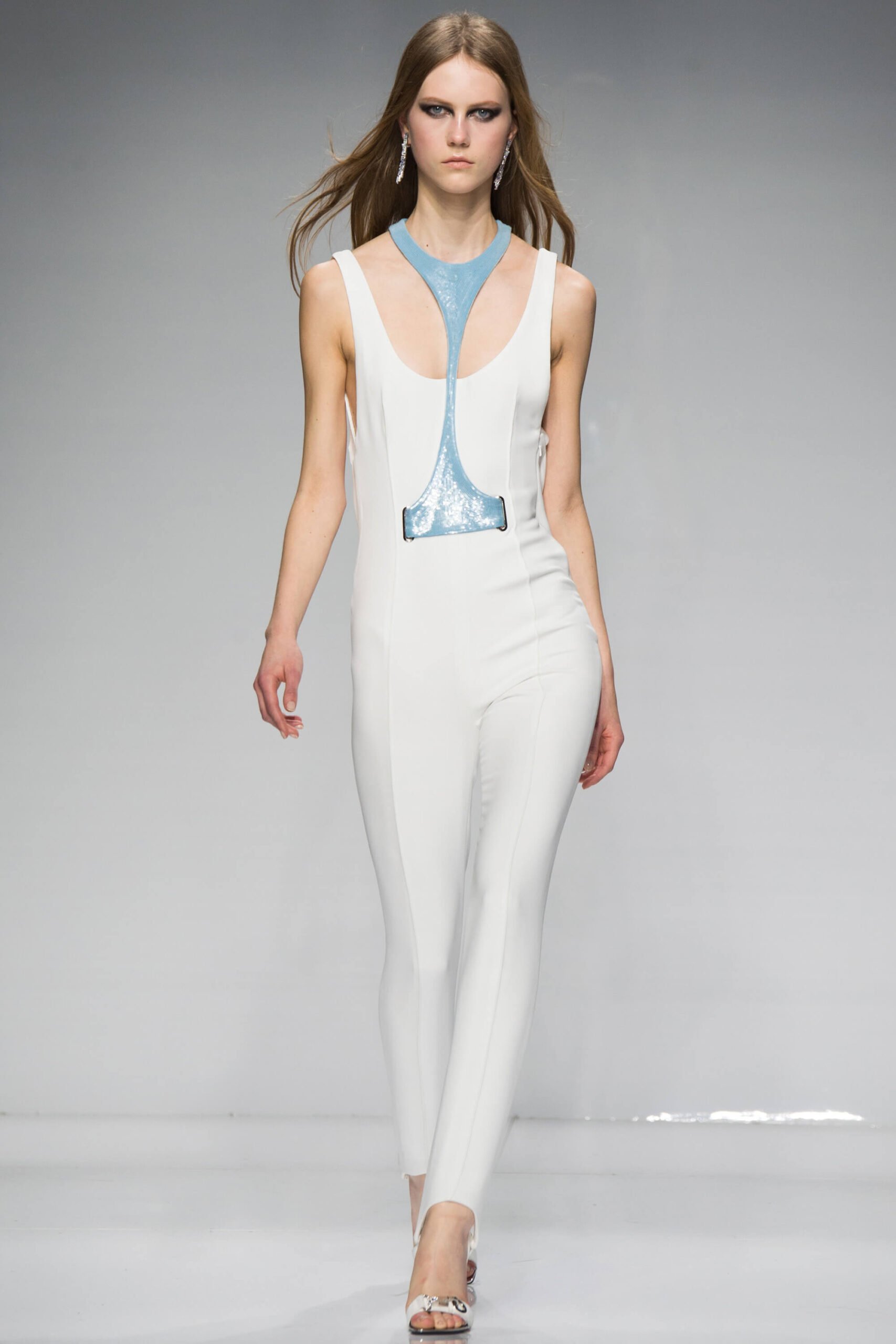 Has Donatella been watching Spiceworld? Because her Atelier Versace show – kicking off the spring/summer 2016 couture season – was a bit posh, definitely sporty, occasionally scary. Running in heels, anyone?! There was nothing babyish about it though, rather a new wardrobe for the powerful and mature Versace woman. Athletic couture was the theme, hence that sport stuff, the slick spikey white futurism, the flashes of neon. And the undeniable energy.