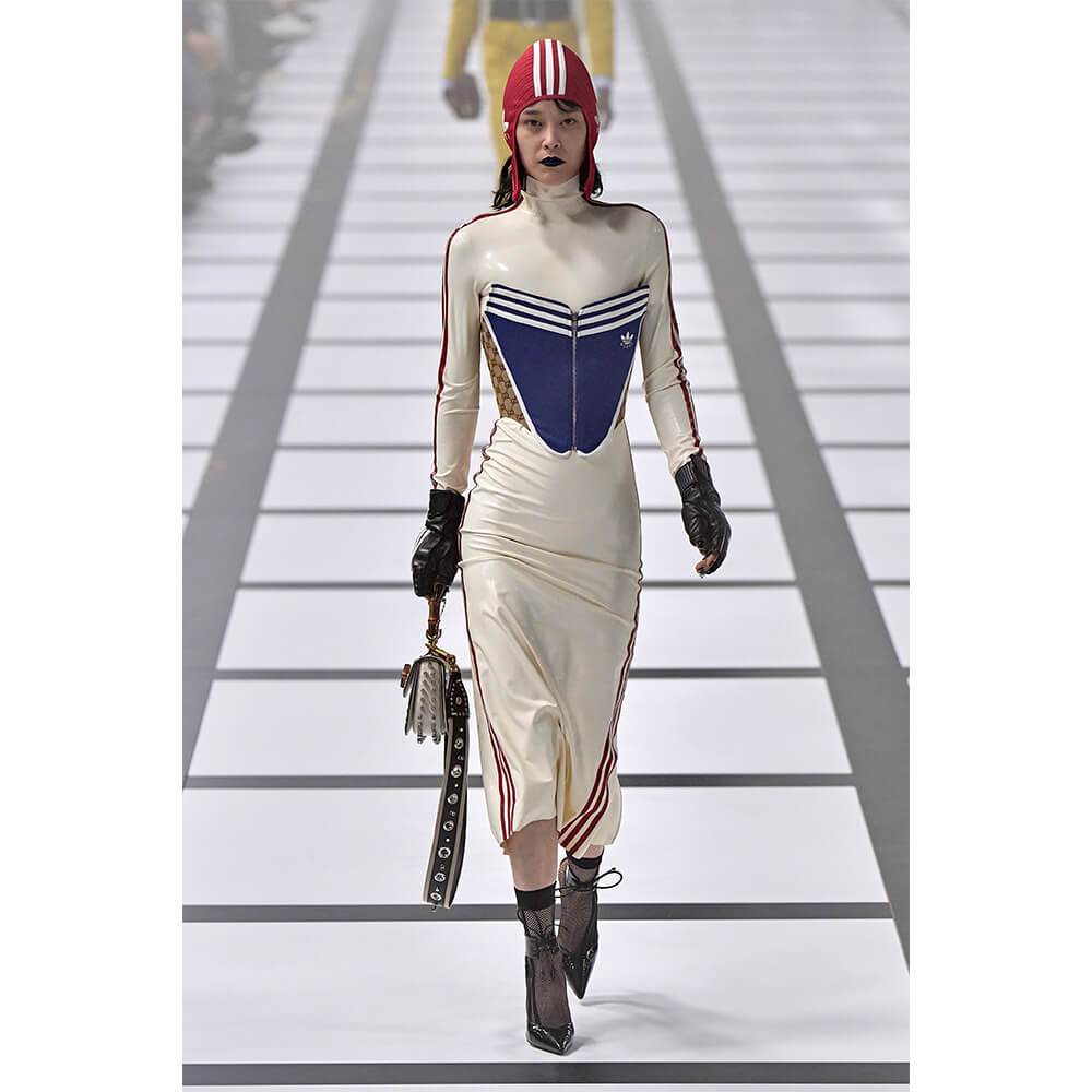 No longer reserved for the playing field, sportswear has finally infiltrated the least manoeuvrable of garms – corsets. Versace offered updated underbust options with second-skin knits underlaid for full flexibility. Trussardi followed suit with foundational bodices working their way into coats and stretchy knits to take you from the gym to the gallery. At Balmain, sporty turned a little more sci-fi with padded corsets fit for either an American football player or a stormtrooper and at Gucci, Adidas corsets came bound the bust.