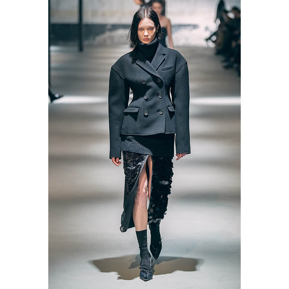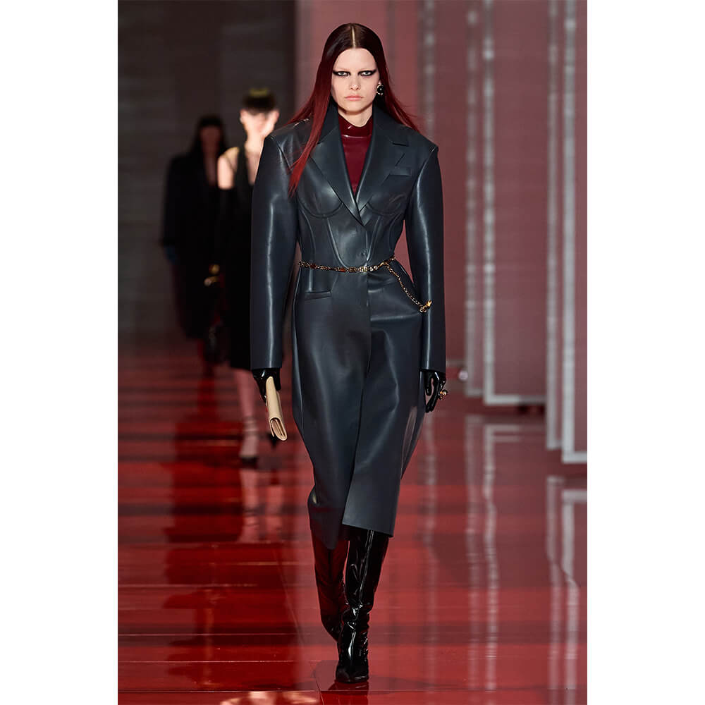For AW22, Gucci’s suits were anything but typical with one-arm blazers and glittering double-breasted tuxedos with studded leather cuffs. Meanwhile, Fendi took on slick mock-necks and cool crops and No. 21 swapped stuffy tailoring for shape accentuating blazers and overcoats with an edge.