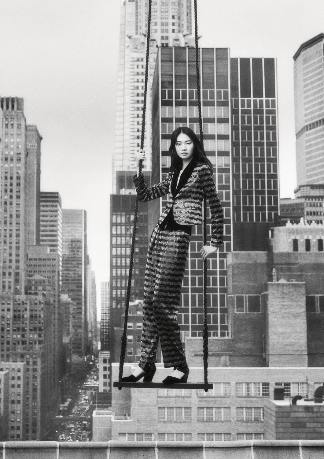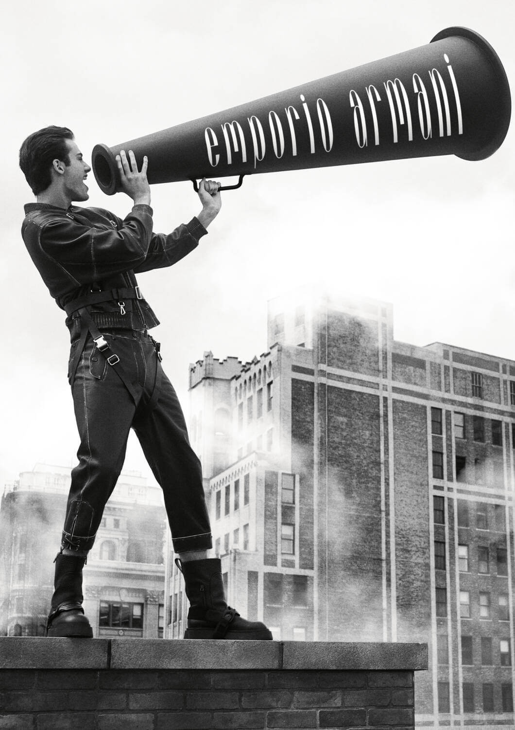 For autumn/winter, Emporio Armani finds itself in the Big Apple. Shot by Gregory Harris against an aerial view of Manhattan, the cinematic black and white images capture models in moments of power and expression while referencing imagery from Emporio Armani’s archive. TS