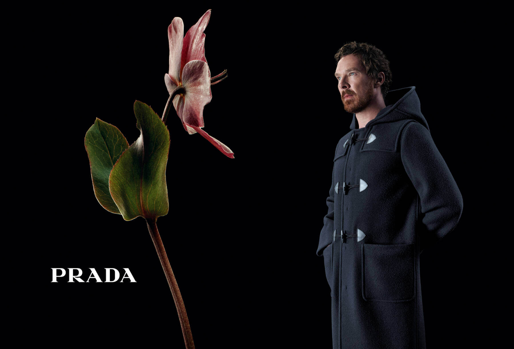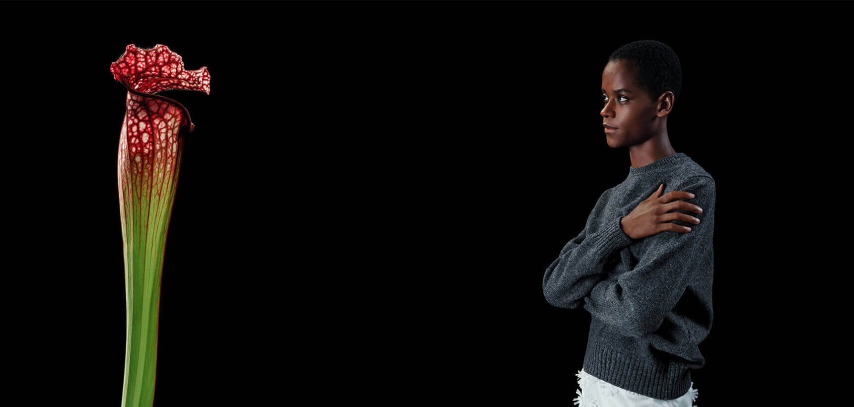 The five cinematic stars, Benedict Cumberbatch, Hunter Schafer, Kodi Smit-McPhee, Letitia Wright and Li Xian, face human-sized flowers in a film scripted by Pulitzer Prize-winning author Michael Cunningham and images shot by Willy Vanderperre. The men’s and women’s campaign In Conversation with a Flower metaphorically uses this flora to represent values of beauty, care, and love. TS