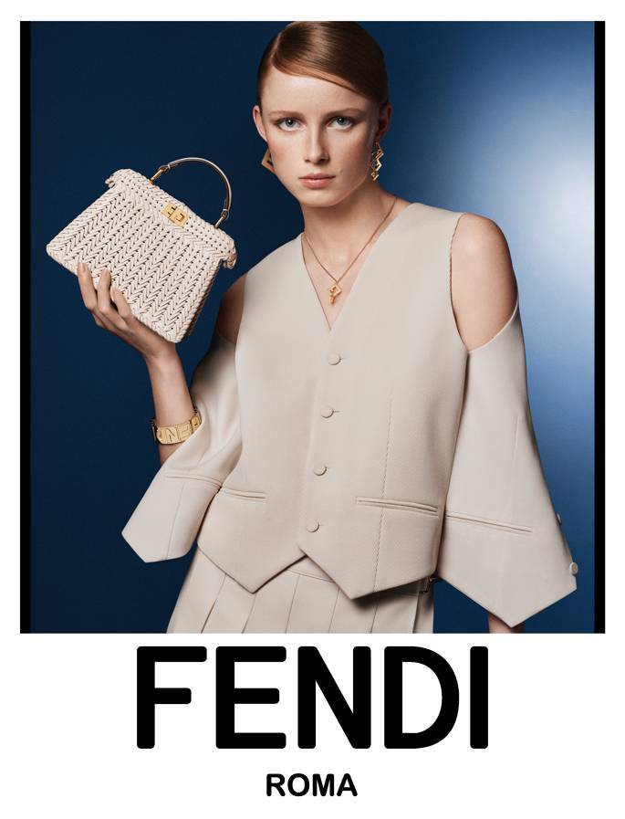 This season, Kim Jones looked to the wardrobe of Delfina Delettrez Fendi for inspiration, having been particularly fascinated how the jewellery designer styles Fendi pieces from the 1990s and early ’00s. The campaign, shot by by Craig McDean, features strong tailoring, powder blue knits and the house’s new Origami handbag. TS