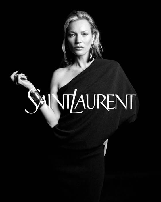 Kate Moss has long been loved by Saint Laurent, storming the runway for Tom Ford a slew of times in the ’00s and sporting Hedi Slimane’s YSL in the 2010s, but now she’s back and cosying up to her mate Anthony Vaccarello, who’s made her the face of the house for Fall 2023.
