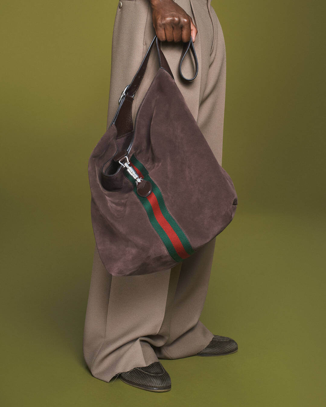Leave it to Gucci to gift us with a high-octane AW23 campaign. David Sims captures Vittoria Ceretti, Aboubakar Konte and Brando Erba against a distinctive army green backdrop with an elevator, reminiscent of the set of the women’s show that took place back in February, all sporting a series of signature silhouettes in ready-to-wear and accessories drawn from recent eras of the house. Centre stage is the Gucci Horsebit Chain bag, the atelier’s latest archival reprisal, decked in padded leather, shearling, crystal and contrast-leather. First introduced by Tom Ford in 2003, the side piece is now defined by a maxi version of its iconic Horsebit clasp, re-contextualized from Aldo Gucci’s 1953 loafer embellishment. EP