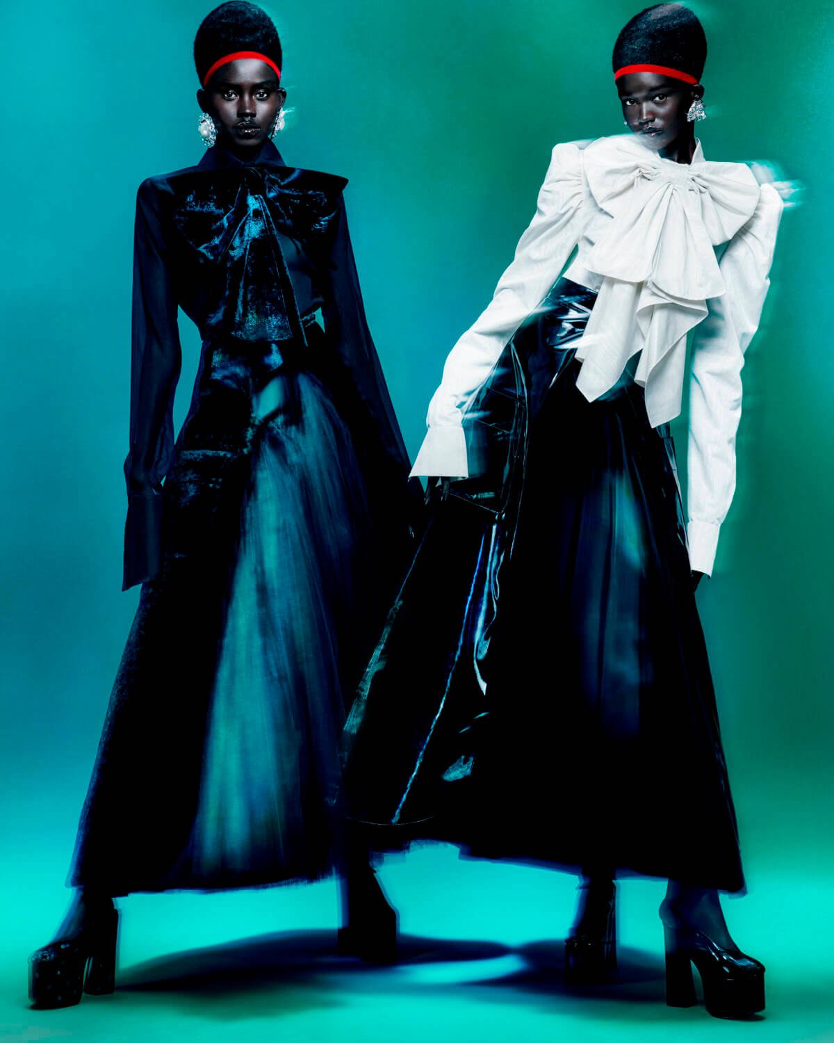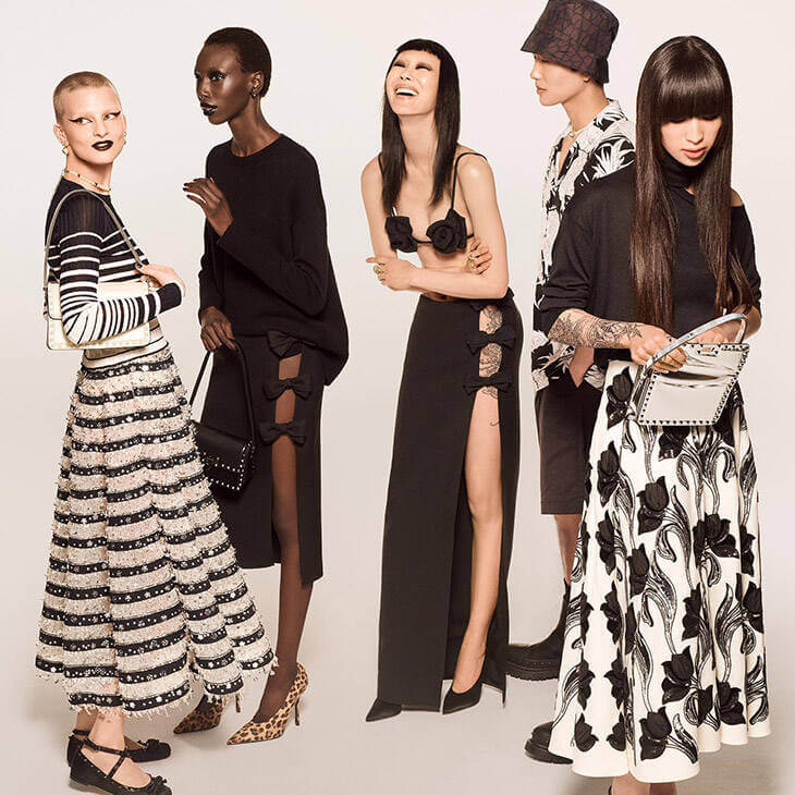 Photographed by the acclaimed Steven Meisel, the maison’s campaign showcases Valentino’s community via group portraits of models adorning the new collection. The accompanying film follows a long line of tables as the models lean in, absorbed in chatter, while two beautiful faces sit daringly, staring at the camera. TS