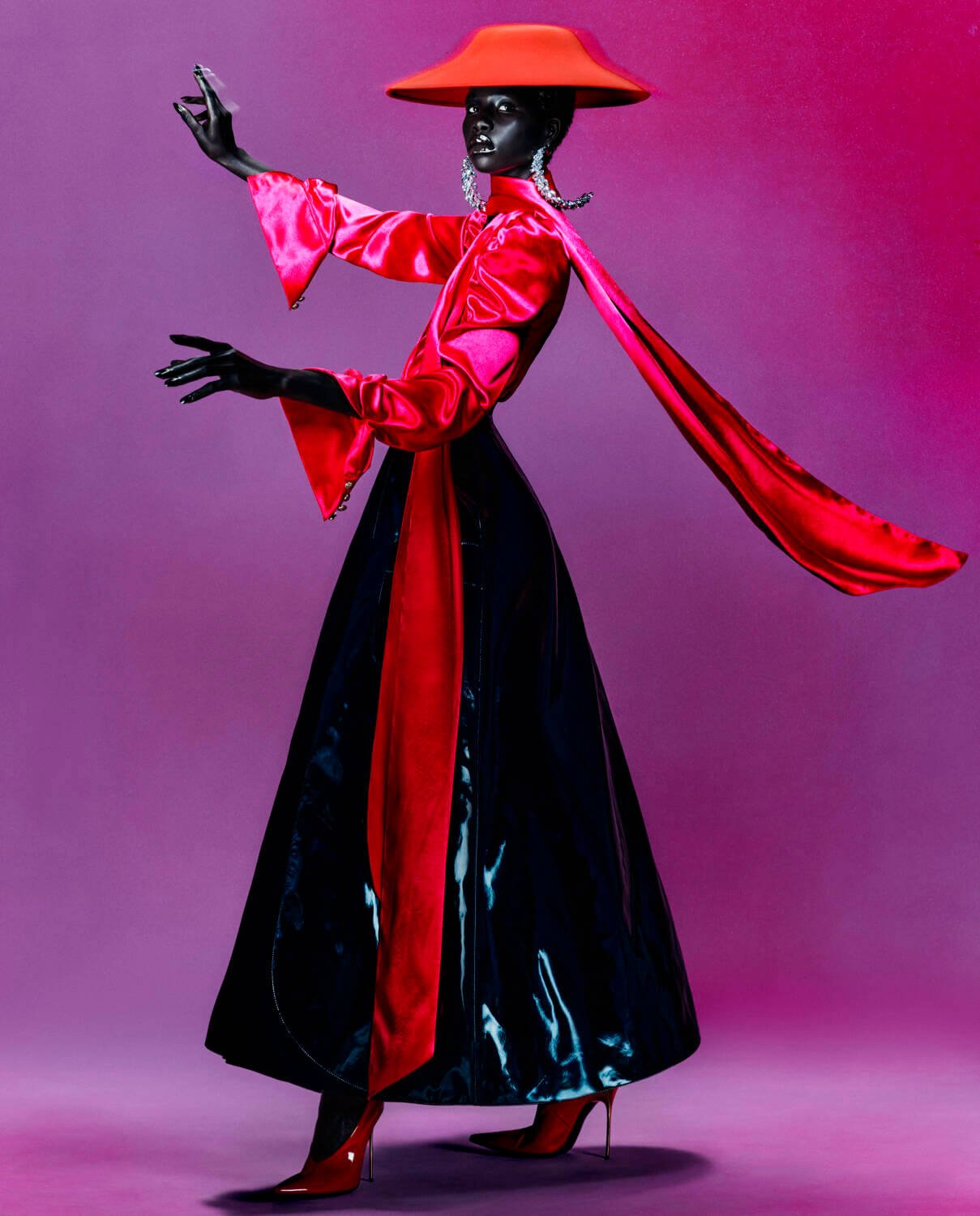 For the men’s campaign shot by Rafael Pavarotti, Kim Jones pulls inspiration from the movement between the Thames to the Seine in a meeting between the purity of the black and grey backdrop and the sophistication of the clothing. When it comes to the womenswear campaign, creative director, Maria Grazia Chiuri, draws her from the shapes of the 1950s and the house’s connection with Catherine Dior, Édith Piaf, and Juliette Gréco – manifesting in powerful shots of models illuminated against bold backgrounds of colourful orbs by Brigitte Niedermair. TS