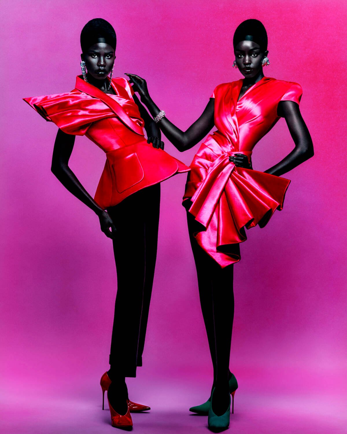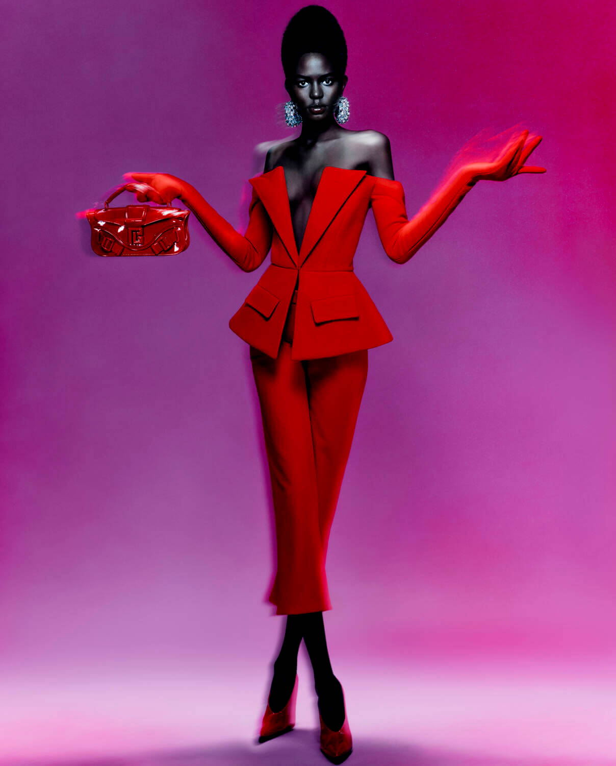 Olivier Rousteing collaborated with photographer Rafael Pavarotti for Balmain’s AW23 campaign. Channelling the hushed atmosphere of its founder’s – Pierre Balmain’s – intimate post-war couture salon presentations, it focuses on the maison’s Parisian heritage and exceptional craftsmanship. To achieve this ambience, no props, dream locations, nor CGI are featured, it simply builds upon Balmain’s bold and enduring ‘New French Style’. Pavarotti’s genius use of light, colour and texture, highlight the atelier’s precise craftsmanship and cuts, whilst the bold tones, lustrous shine and ethereal models capture the essence of the house’s contemporary style. At that, the campaign honours the traditions and expertise of couture whilst simultaneously bringing in the illustrious beauty of twenty-first century Paris. Joe Benham
