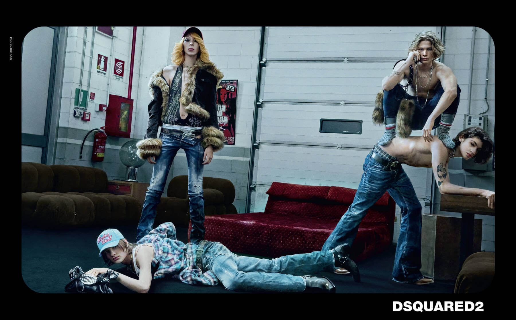 A high-intensity film directed (and photographed) by Steven Klein serves as Dsquared2’s AW23 campaign. Reuniting with longtime collaborator and lauded creative director Giovanni Bianco to bring the spirit of playful indulgence vividly to life, the pair dive into youthful fantasy. Through a candid, campy study of jocks, geeks, goths and emos, lensed like a window to a chill hangout amongst young friends, Dan and Dean Caten’s Y2K-ified western wet dream wardrobe will have you gagging to get your hands on it. Social-media superstar Jean Carlo Jashlem and it-girl photographer and filmmaker Nadia Lee Cohen appear alongside Issa Lish Gianluca Molin and others wearing skimpy Daisy Dukes and low slung jeans, fur lined afghan coats, slogan trucker caps, fringed jackets and cropped baby tees. Shop the collection here. EP