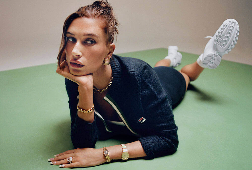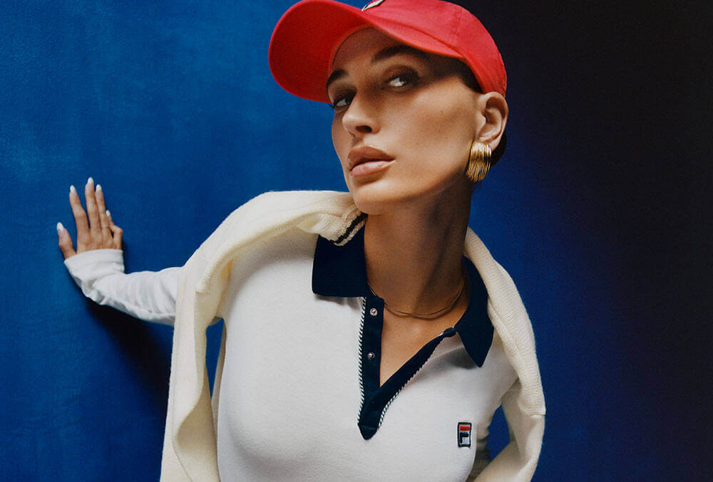Fila just teamed up with its newest global ambassador Hailey Bieber – who will collaborate with Fila to design signature sportswear collections, with the first drop slated to launch in autumn/winter 2024 – alongside tennis superstar Reilly Opelka, to front its AW23 campaign celebrating the 50th anniversary of the company’s distinguishable F-Box logo. First presented in 1973, when the sportswear giant introduced colour to the tennis court, it is a symbol of the brand’s influence in sport, style and the individuals that represent its values. Photographed by Renell Medrano and styled by Dani Michelle and Bieber herself, select styles of the F-Box Anniversary Collection are worn throughout the campaign. Tennis-inspired pieces are prevalent and blend both archival and contemporary; Reilly especially epitomises Fila’s spirit of boldness and creativity. Spotlighting the versatility of the collection, the designs will take wearers from court-to-street. You could say that it served an ‘ace’ – that’s tennis terminology! JB